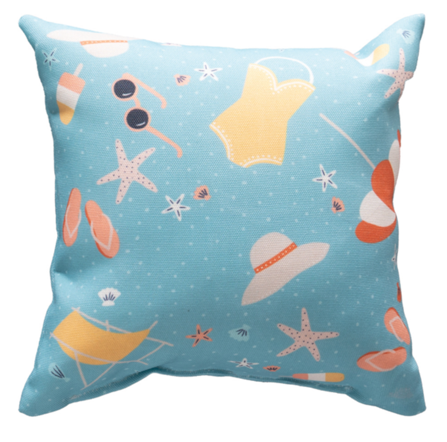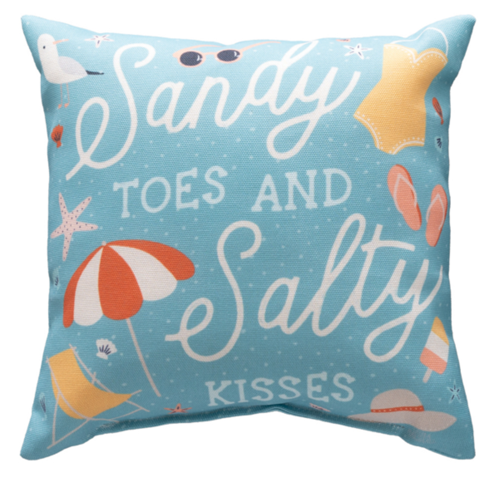 SKU - MWWSDSTOEBeach House Decor Pillow – Sandy Toes and Salty Kisses Quote in Coastal Blue