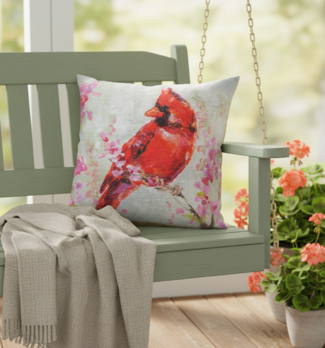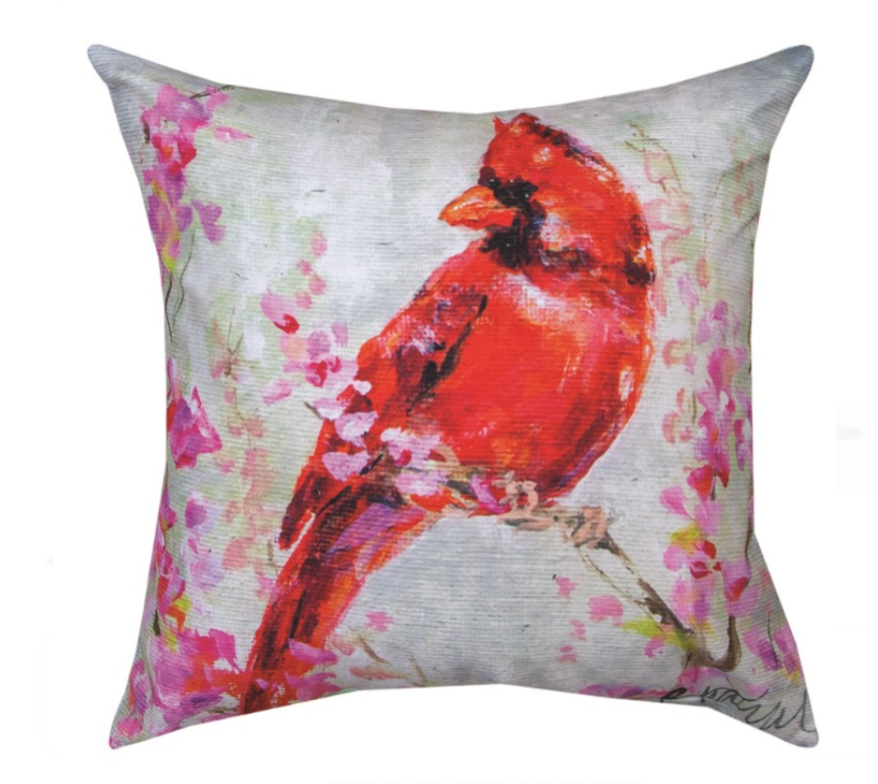 Manual Woodworkers Cardinal in Redbud Pillow – 18 Inch Outdoor Accent