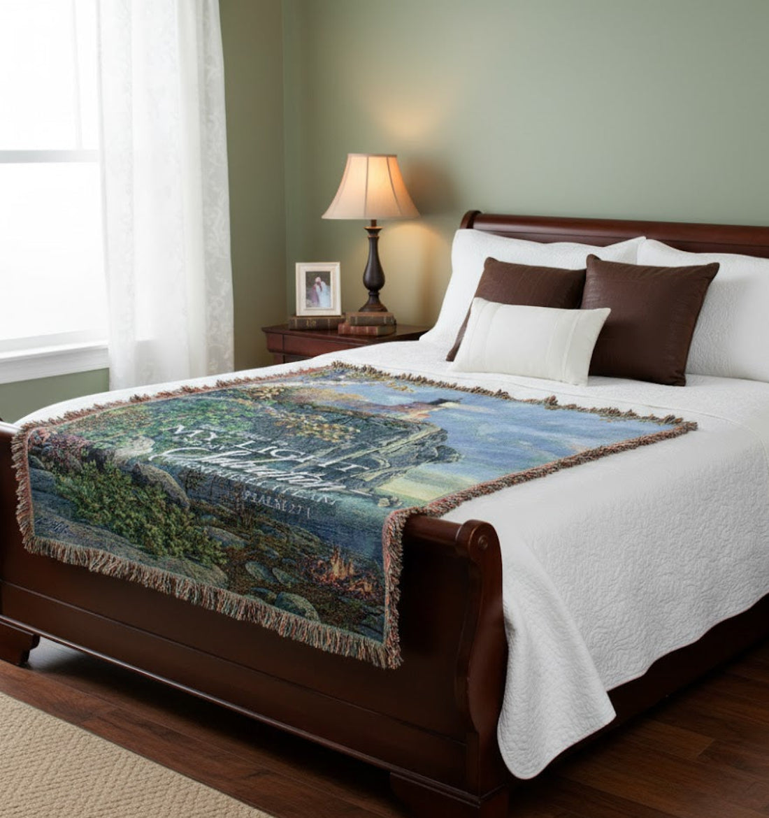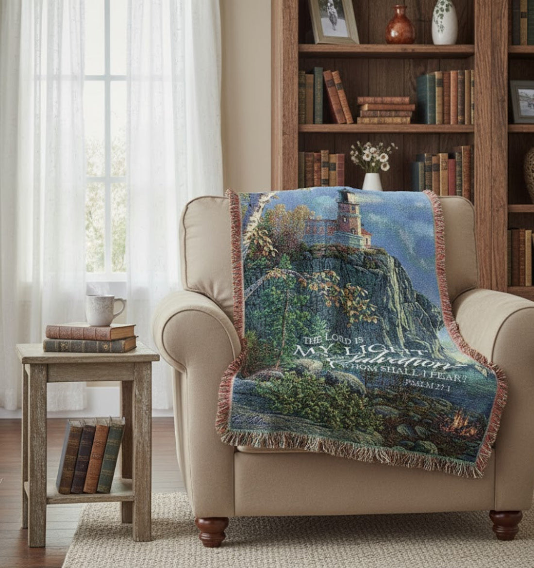 Guiding Light 50x60 inch Cotton Tapestry Throw Nautical Faith-Inspired Design by Manual Woodworkers