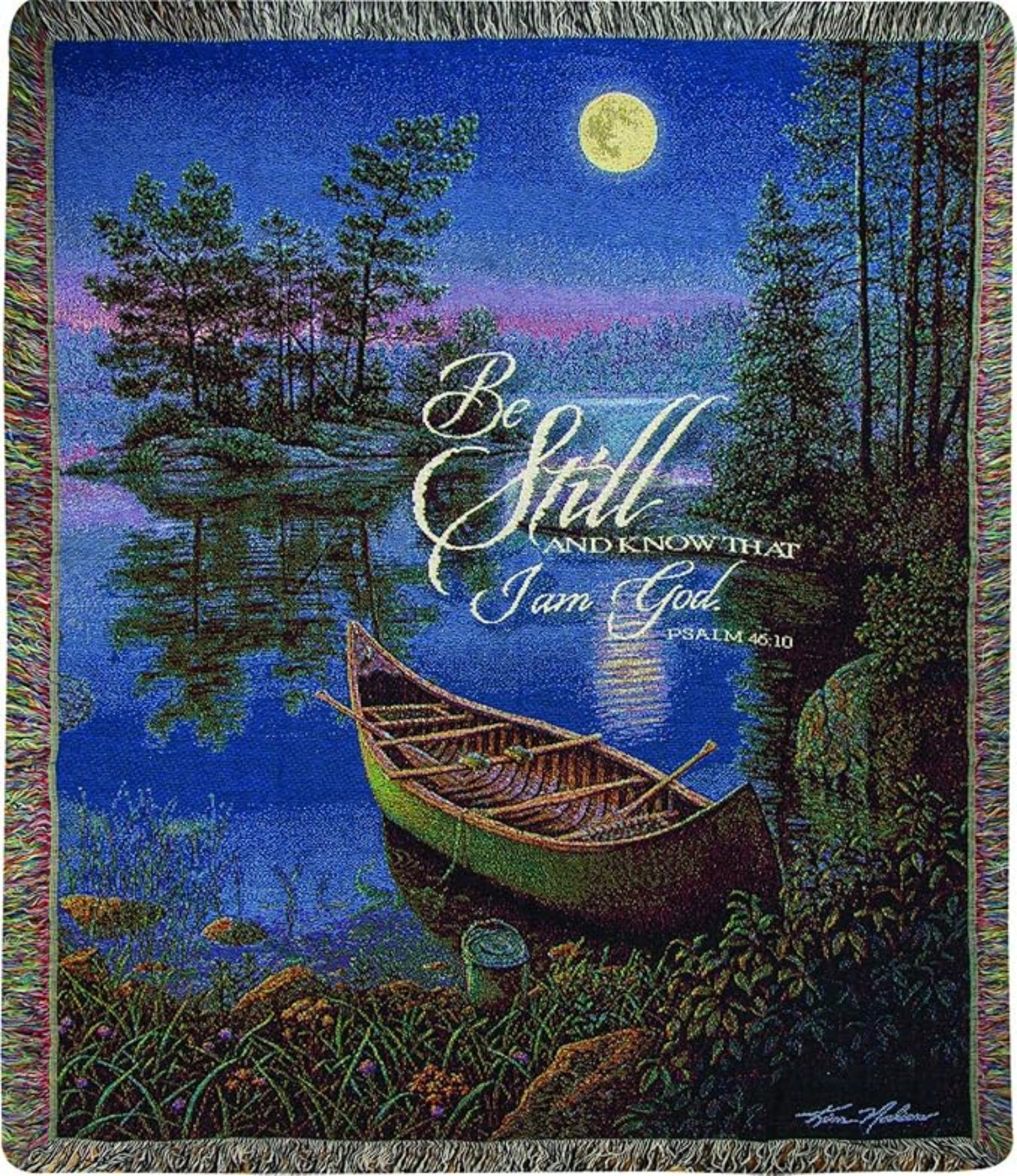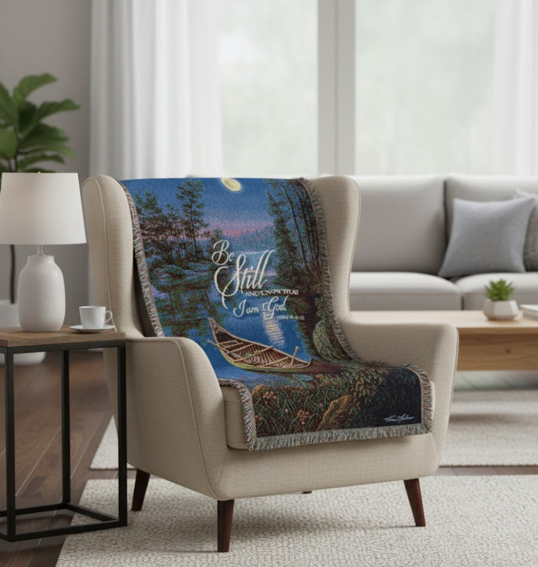 Tranquil Moonlight Bay Woven Throw – 50x60 inch Cotton Tapestry by Manual Woodworkers
