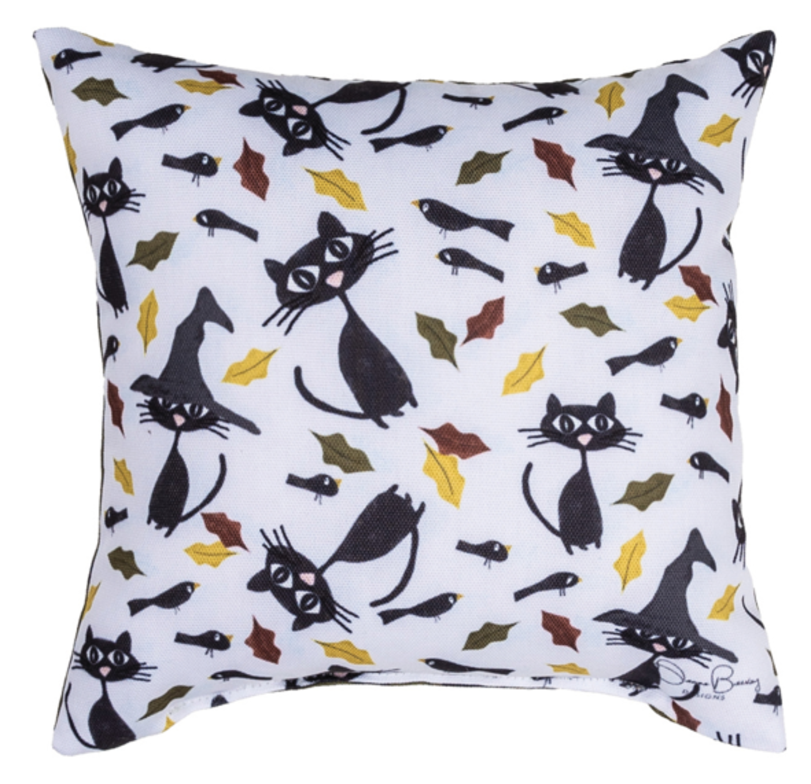 Celebrate spooky season in cozy, rustic style with the Manual Woodworkers Pumpkin Spice Crows Pillow. This 9 x 9 inch decorative accent features a whimsical crow illustration paired with autumnal elements and warm seasonal tones. Designed for small-space styling or as a festive layering piece, this pillow adds personality and charm to any Halloween or fall-themed setup. Whether placed on an entry bench, living room chair, or seasonal porch vignette, its compact size and soft fabric make it an easy, eye-catching addition to your holiday décor collection.