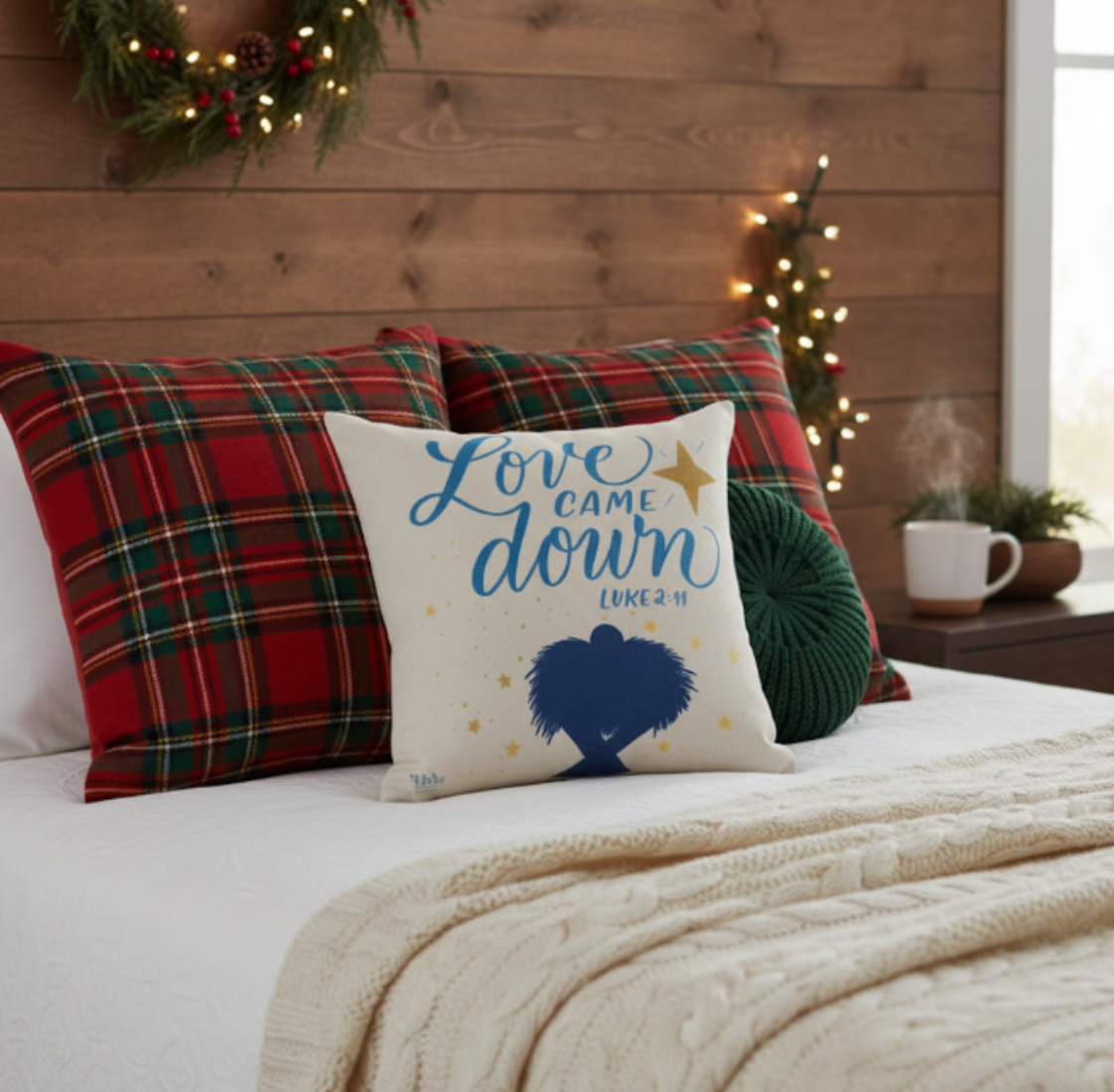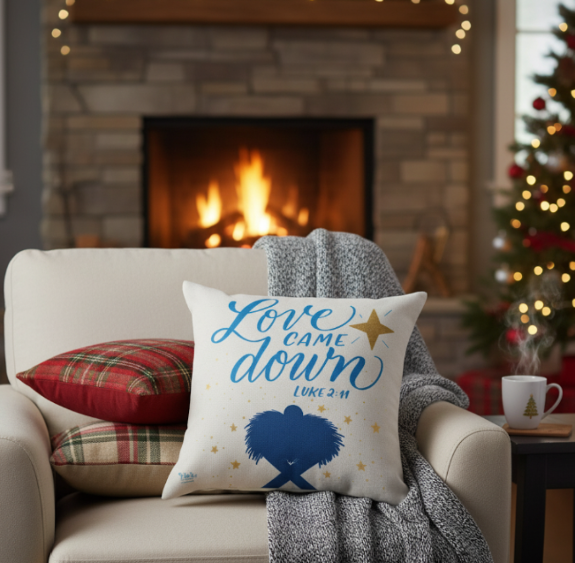 Celebrate the season with the heartfelt Manual Woodworkers 12x12 Blue & White Christmas Pillow, featuring the inspiring phrase “Love Came Down”. Made from durable, weather-resistant Climaweave polyester, this decorative pillow is perfect for both indoor and outdoor use. Its classic blue and white color scheme blends seamlessly into farmhouse, coastal, or traditional holiday décor. Sized at 12" x 12", this compact cushion is ideal for layering on sofas, benches, or porch chairs, adding a meaningful and cozy accent to your festive setting.