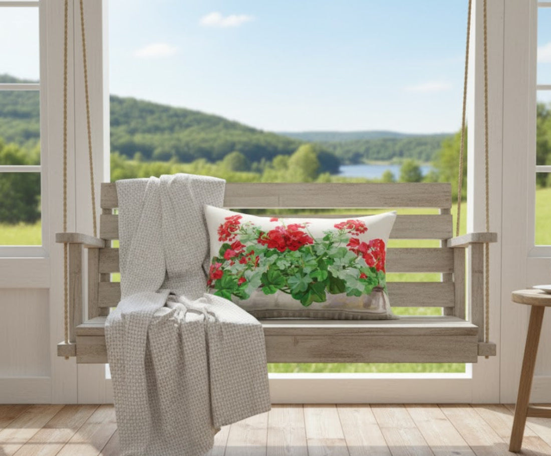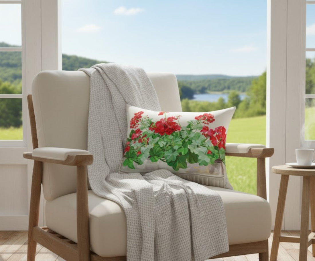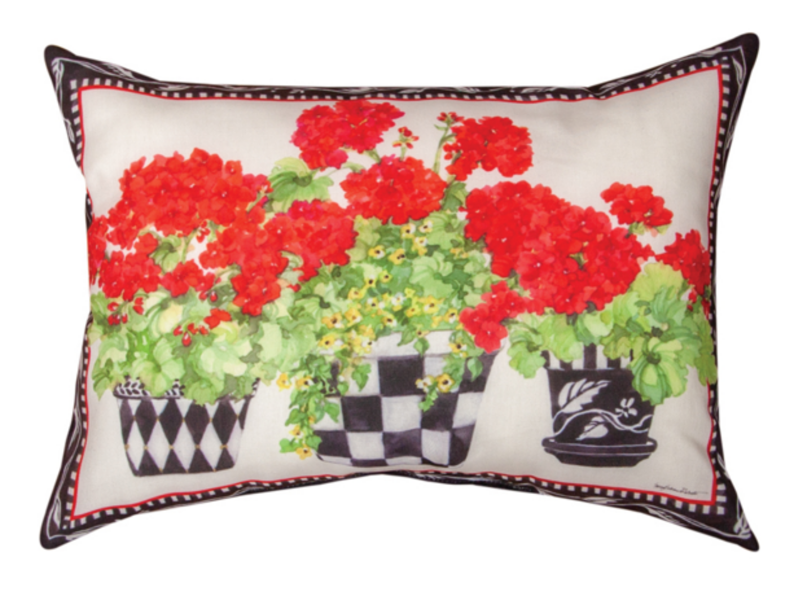 SKU - MWWSHGERAFloral Pillow – Geranium Pots 18x13 inch by Manual Woodworkers