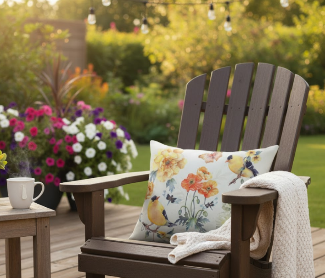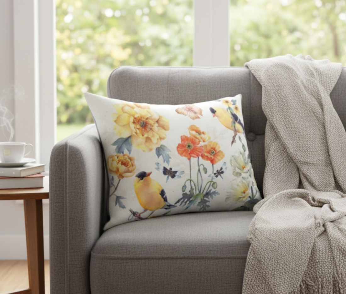 Manual Woodworkers Floral Sunshine Garden Pillow – Weatherproof Climaweave 18x13 inch