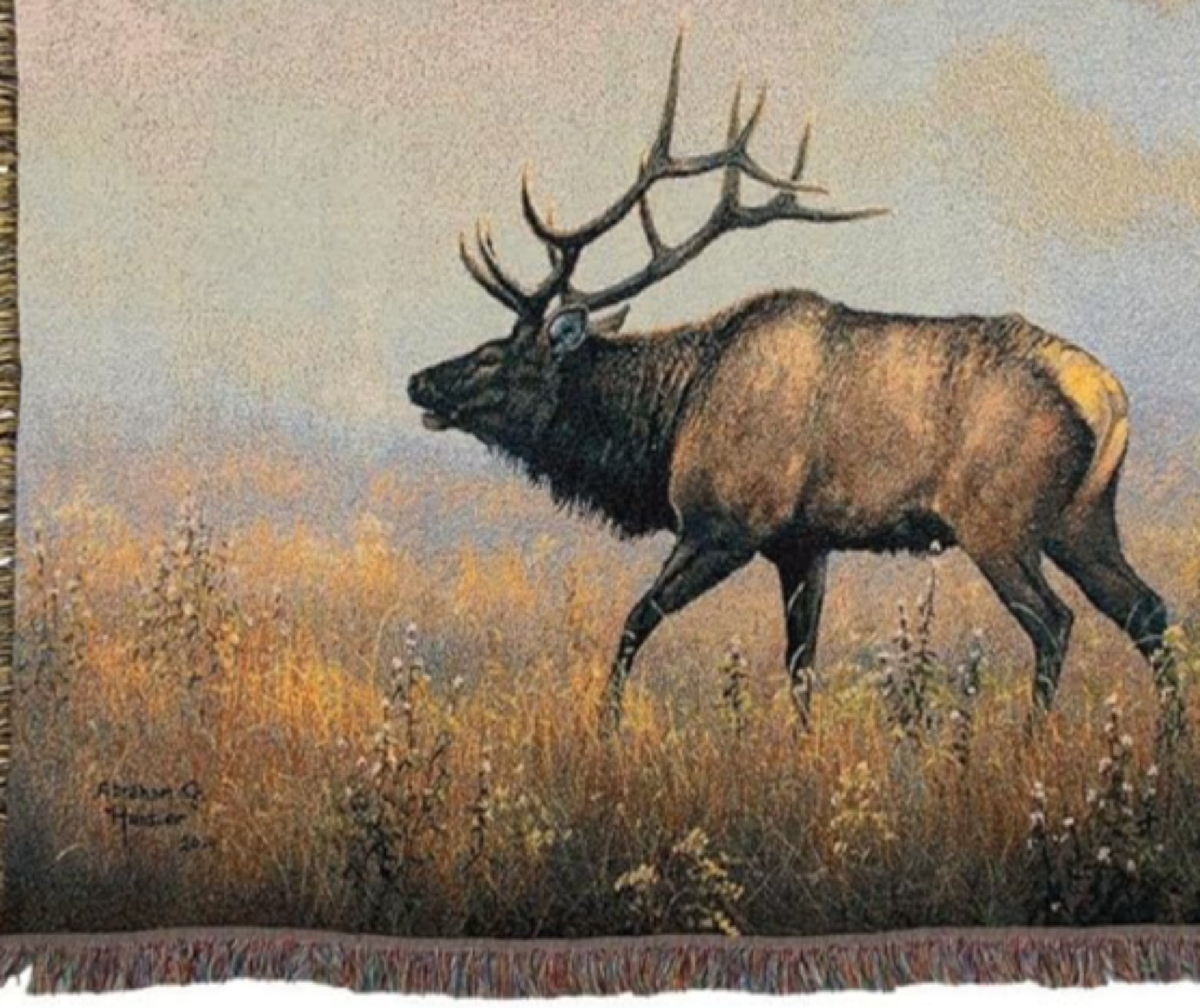 Manual Woodworkers Grey Elk Throw Blanket – Nature-Inspired Tapestry for Living Room or Den