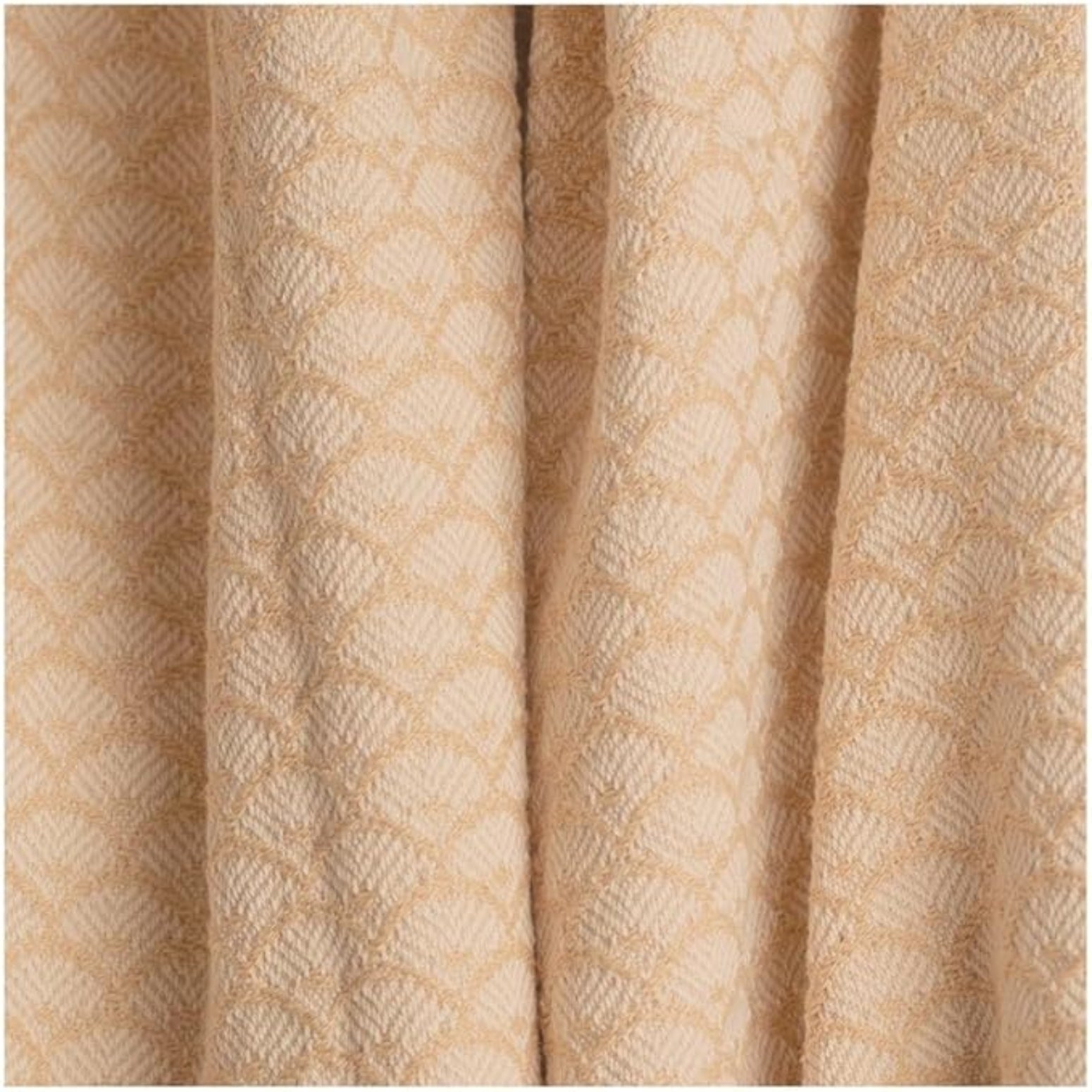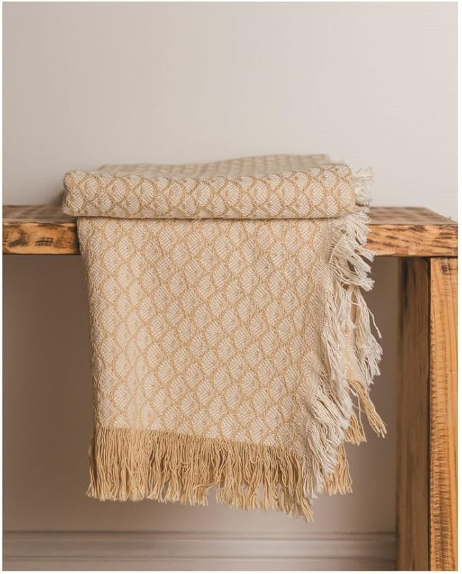 Tan Cotton Throw Scalloped Edge Weave Decorative– 46x67 inch by Manual Woodworkers
