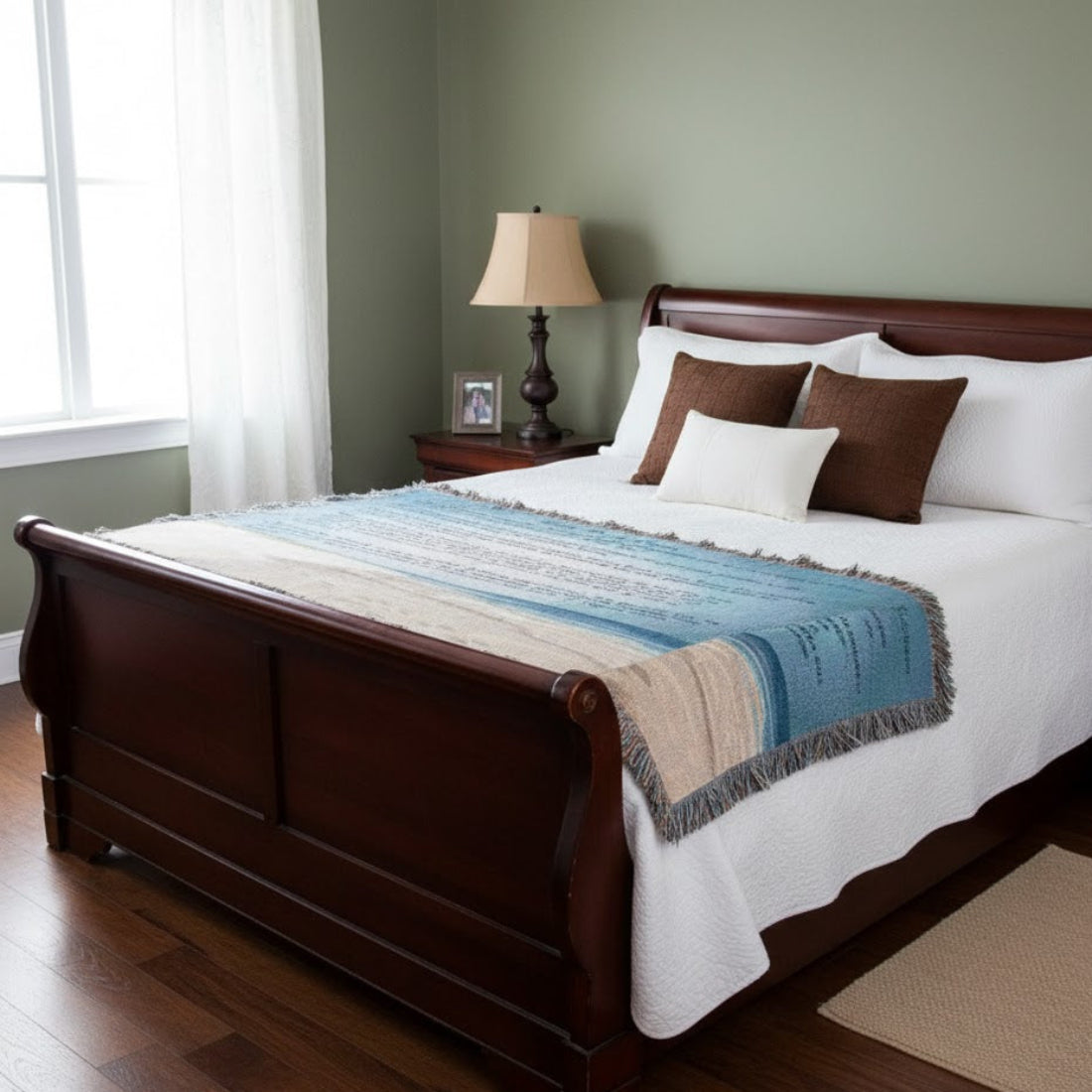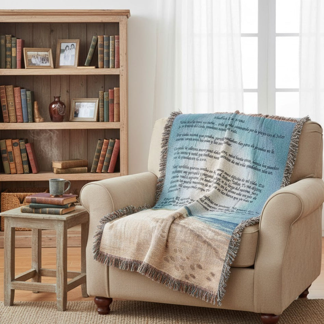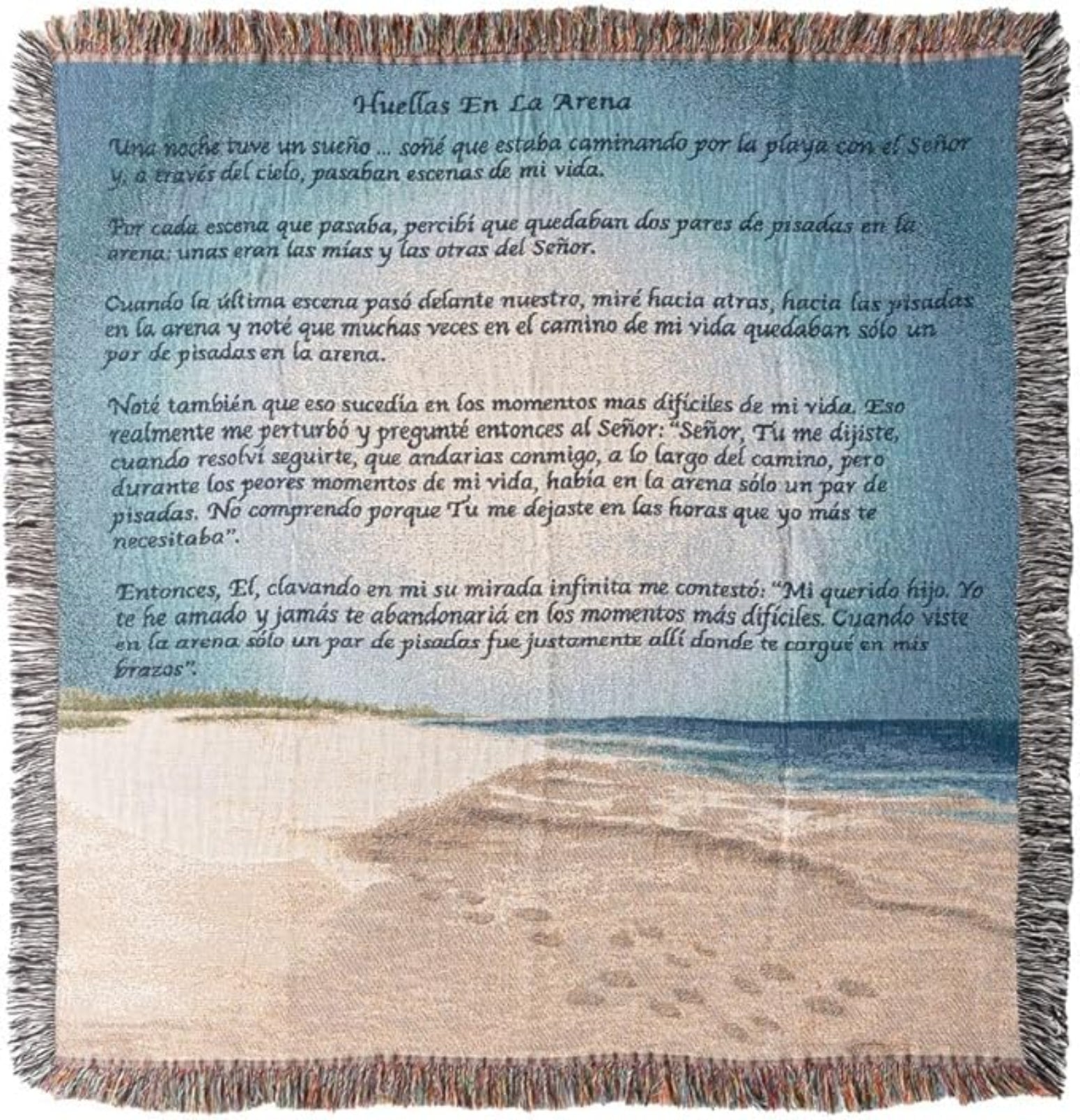 Footprints in the Sand 50x60 inch Cotton Throw – Spanish Inspirational by Manual Woodworkers