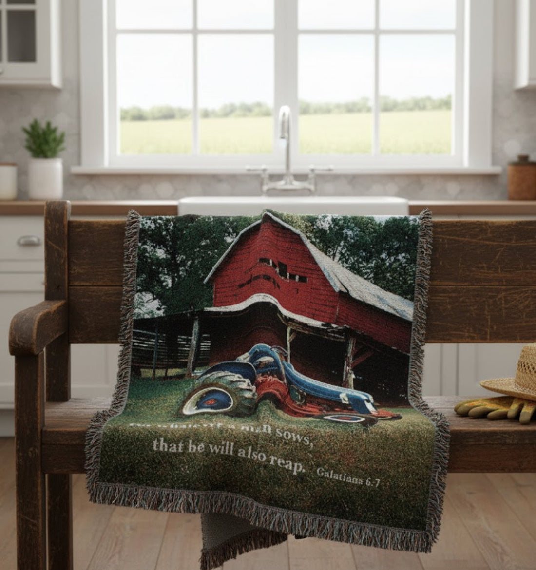 Christian farmhouse décor throw,country-style woven throw,farmhouse decorative throw with verse,fringed inspirational blanket,inspirational woven blanket,Manual Woodworkers cotton throw 50x60,Mill Spring Farm tapestry throw,rustic home décor gift blanket,rustic inspirational tapestry blanket,Throws,woven tapestry blanket with verse