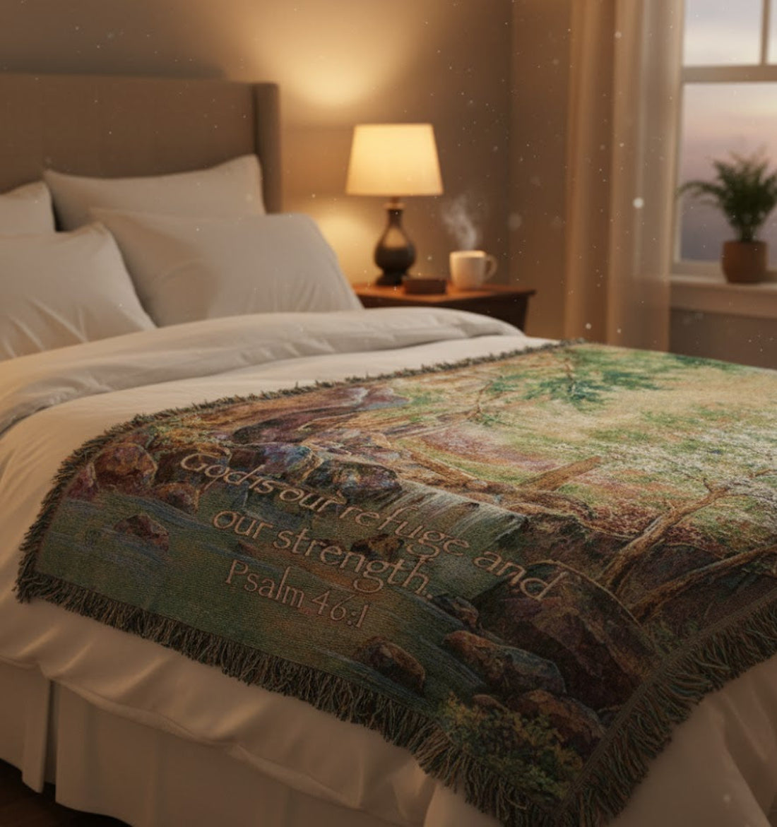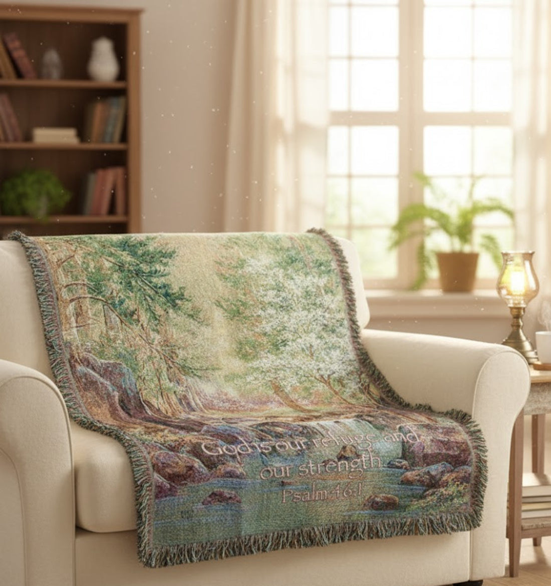 NATURE’S RETREAT Cotton Throw with Verse – 50x60 Inch by Manual Woodworkers