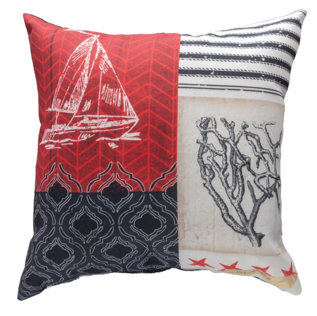 SKU - MWWSLNWCBNautical Themed Pillow – Maritime Ship Motif 18"