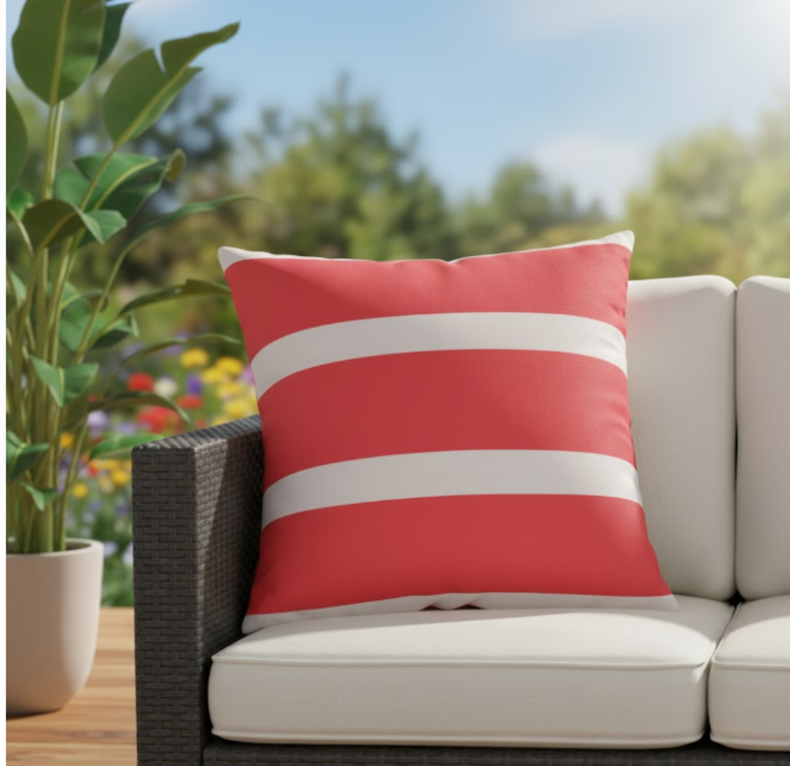 Outdoor Red Stripe Pillow 18x18 – Weather-Resistant Patio Decor Cushion