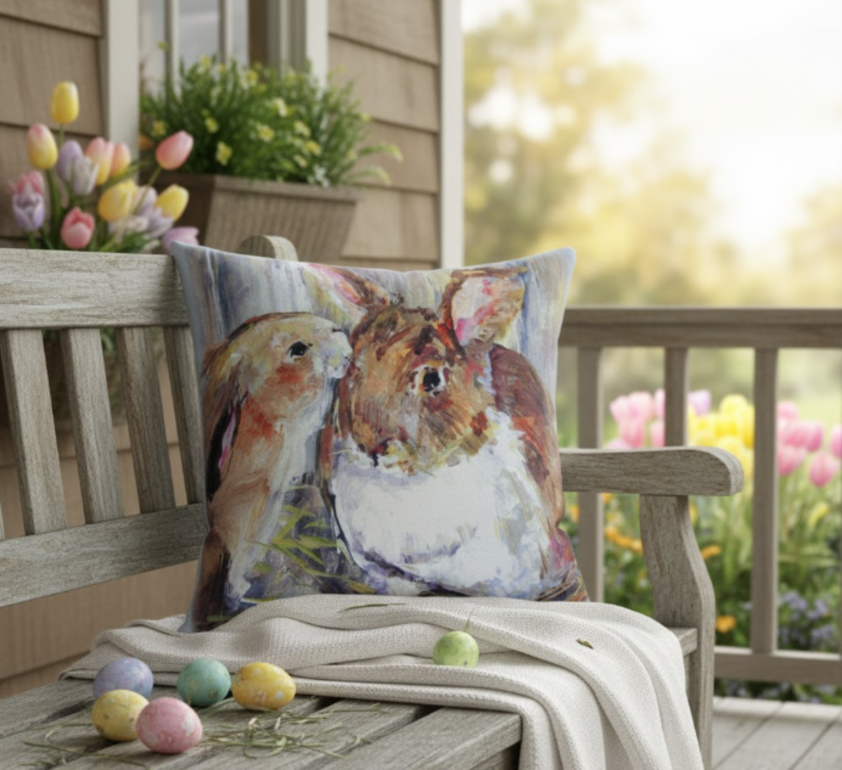 SKU - MWWSLKBPRomantic Bunny Accent Pillow – 18" Climaweave Springtime Style