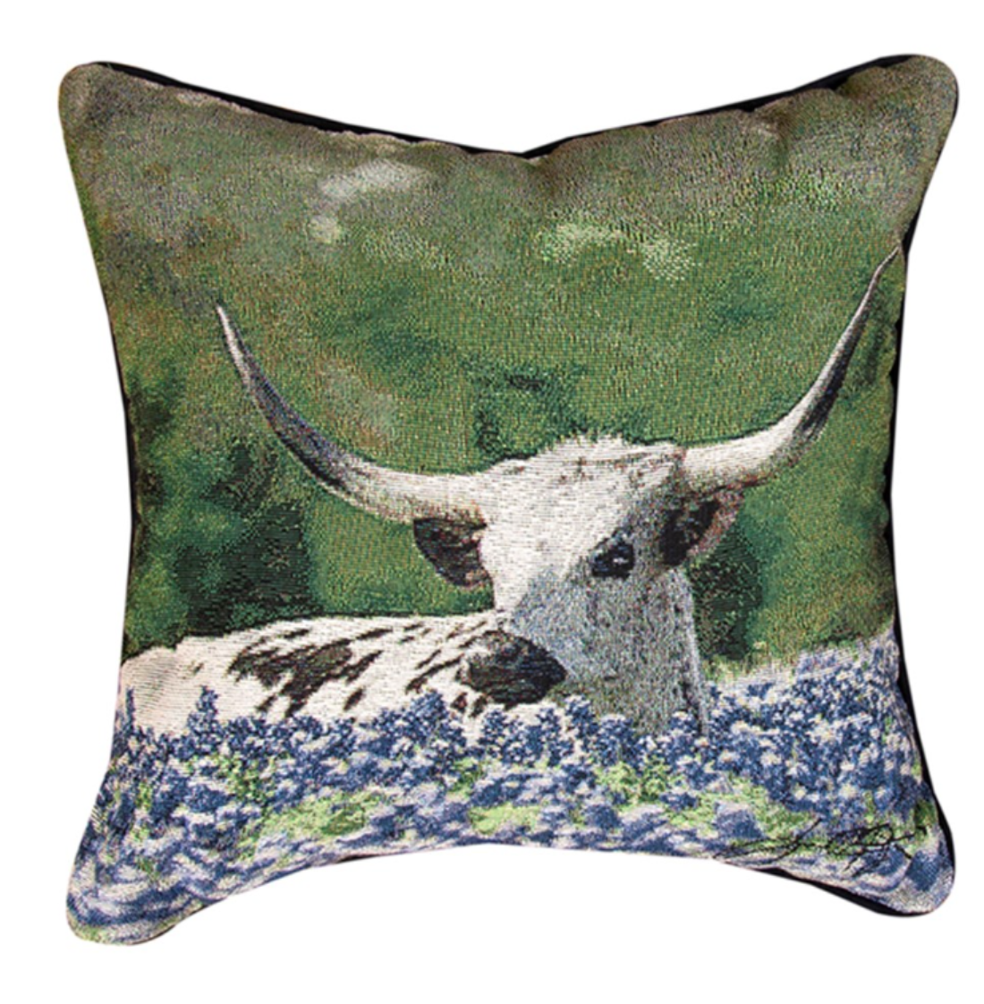 SKU - MWWSLLSBBSouthwestern Pillow – Longhorn & Bluebonnets 18" Climaweave