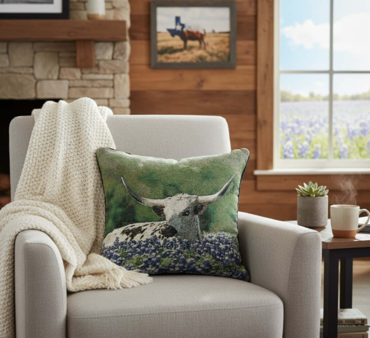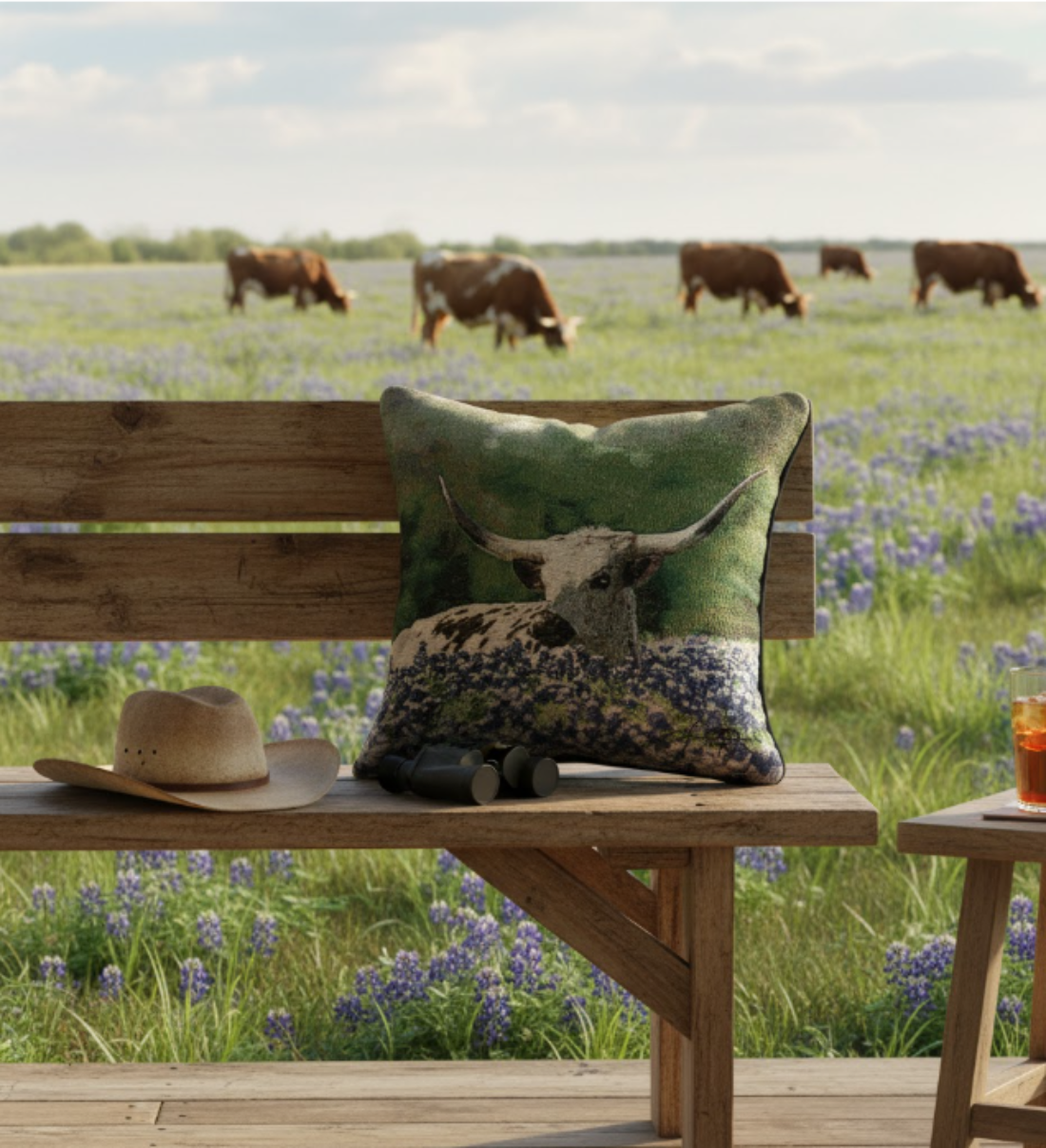 - Iconic Southwestern Design: Longhorn steer with bluebonnets adds regional charm