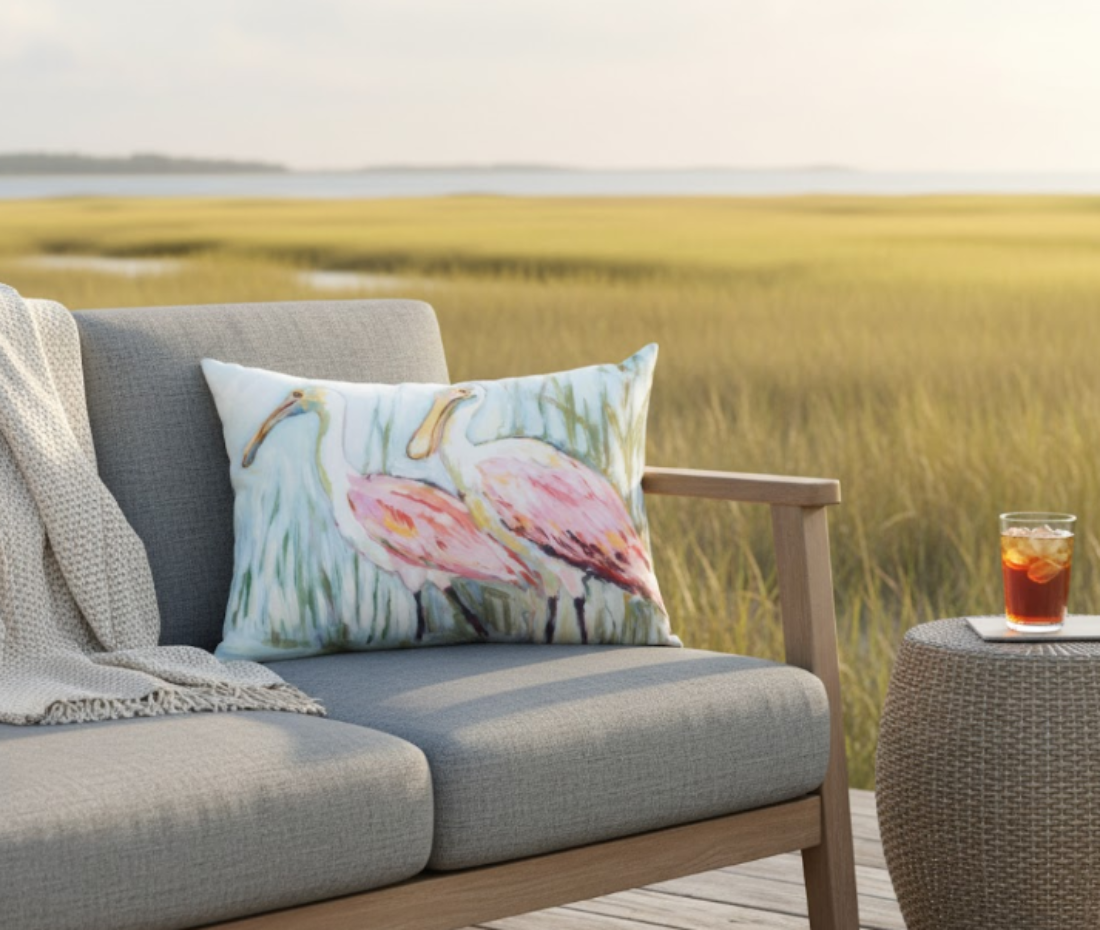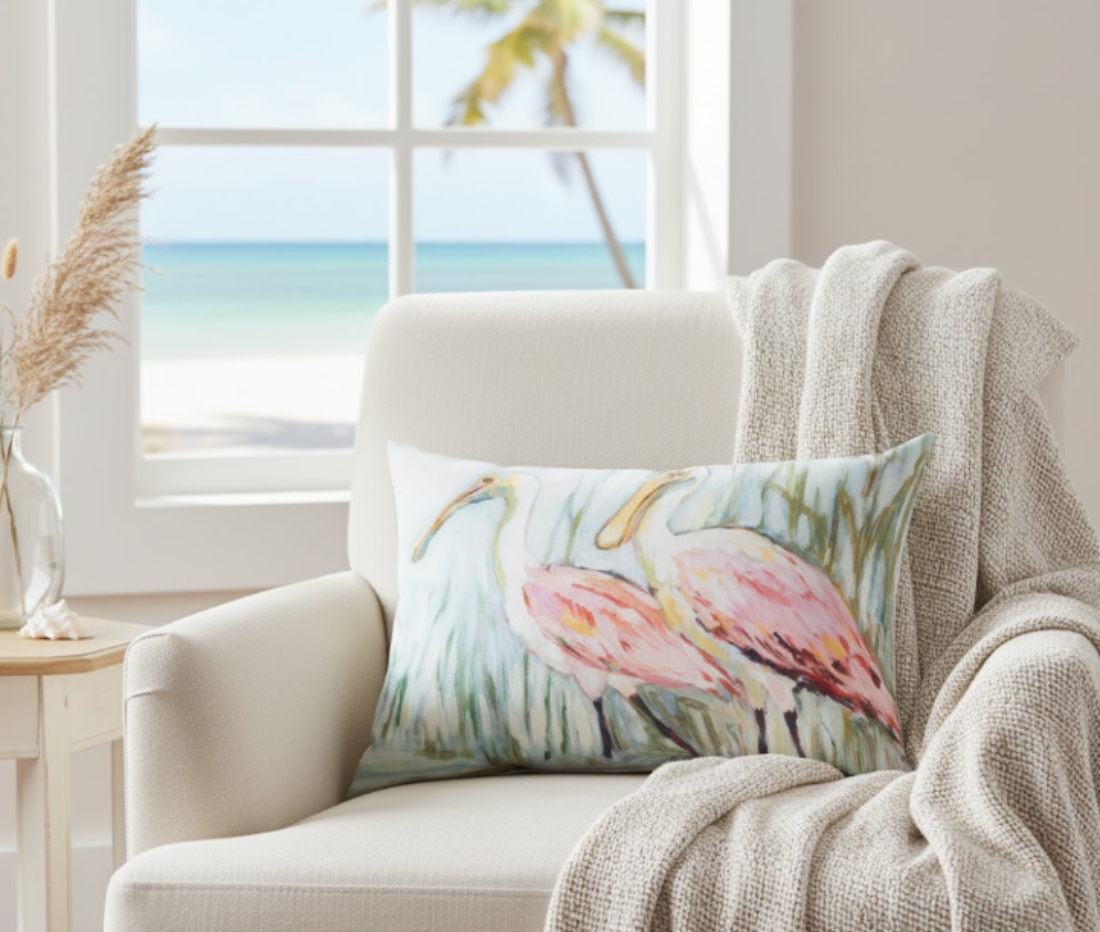 Manual Woodworkers Coastal Spoonbill Print 18x13 inch Climaweave Pillow
