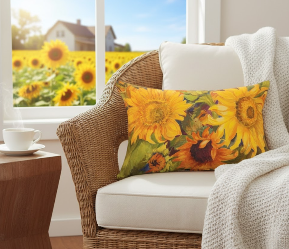 SKU - MWWSHSUNFSunny Faces 18x13 inch Climaweave Pillow – Vibrant Garden-Inspired