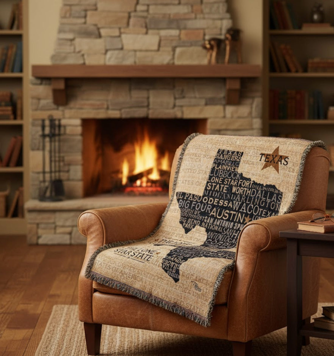 - Design Style: Tapestry-style weaving featuring Texas-inspired imagery and motifs
