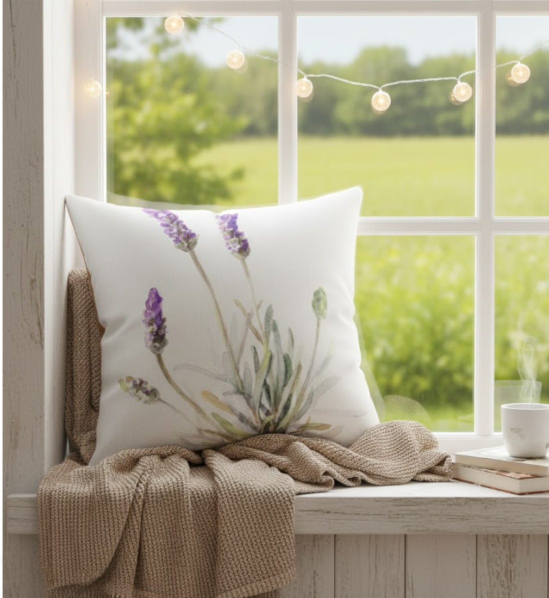 - Floral Elegance – Lavender flour sack print adds soft countryside charm to any seating area