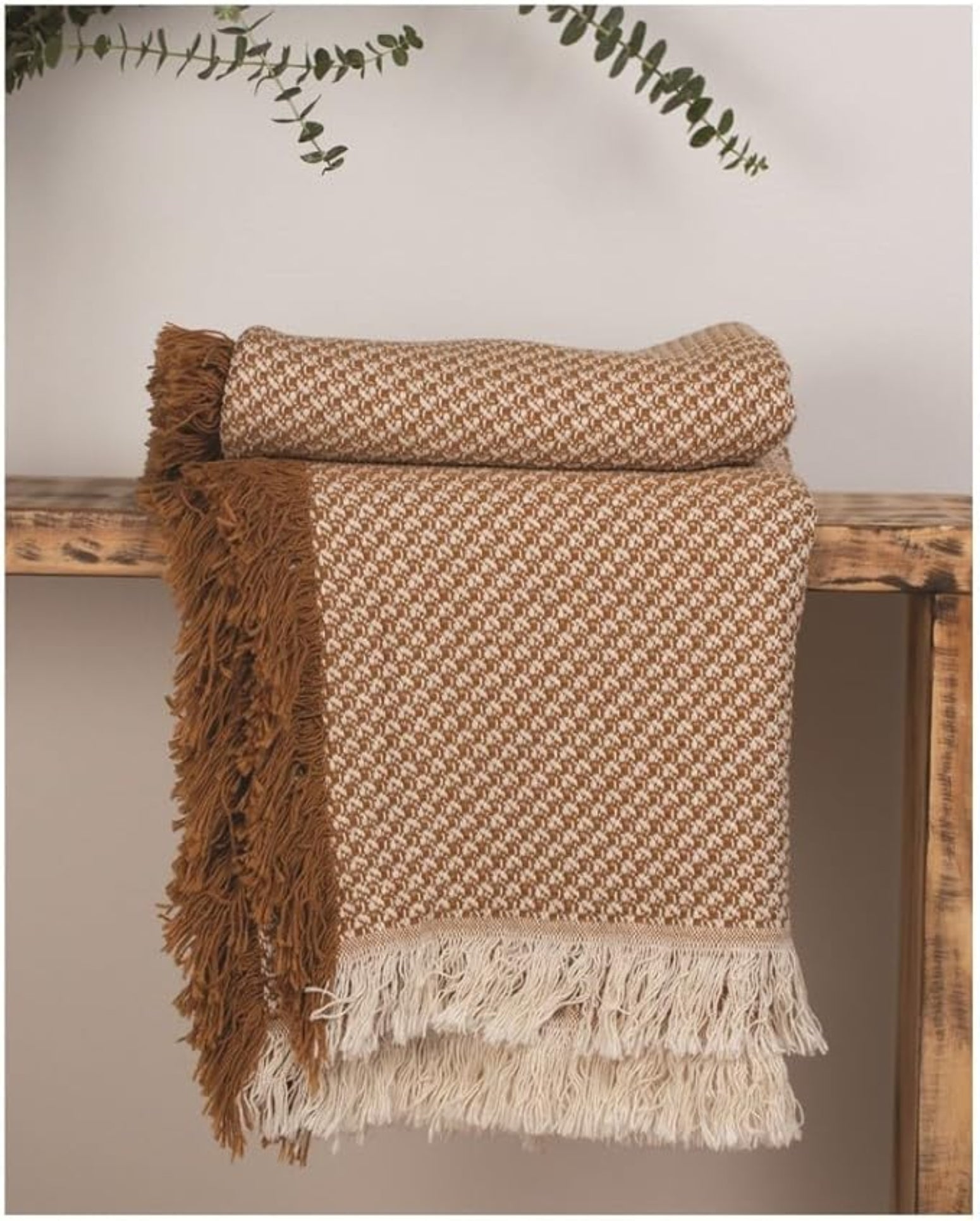 Bring warm, textural charm to your space with the MW Mini Box Bronze Throw expertly woven from 100% cotton for breathable comfort and lasting durability. Measuring 67 x 46 inches, this cozy accent piece features a geometric mini box pattern in rich bronze brown and crisp white tones — blending seamlessly into modern, rustic, or bohemian interiors. Whether draped over a sofa, folded at the foot of a bed, or hung as a decorative wall tapestry, it adds a tactile layer and refined design touch. Soft yet structured, it’s perfect for year-round use and easy to fold, hang, or display flat.