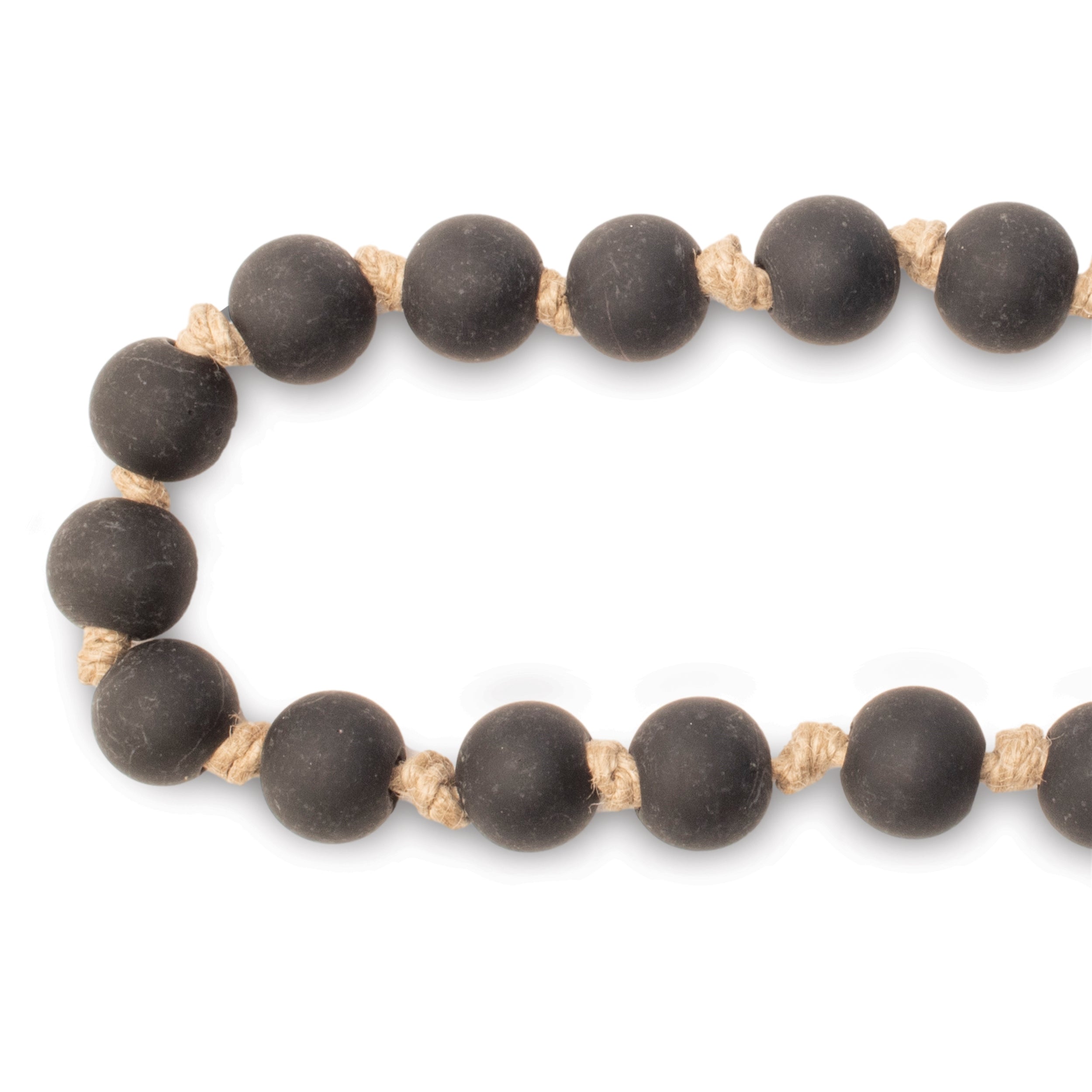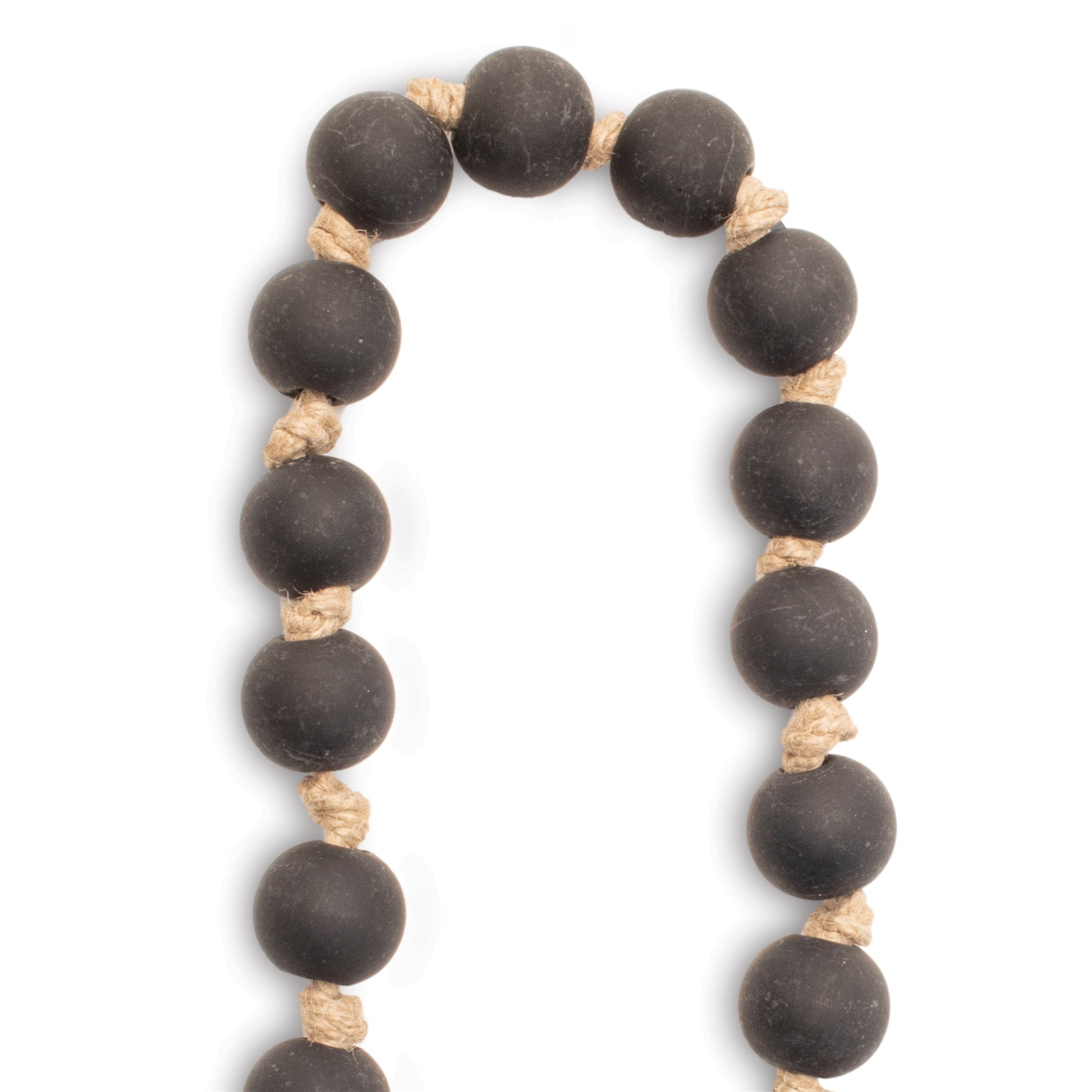 Matte Black Glass Bead Garland (Set of 2) 24"L – Black Tan Glass Jute Farmhouse Holiday Decor