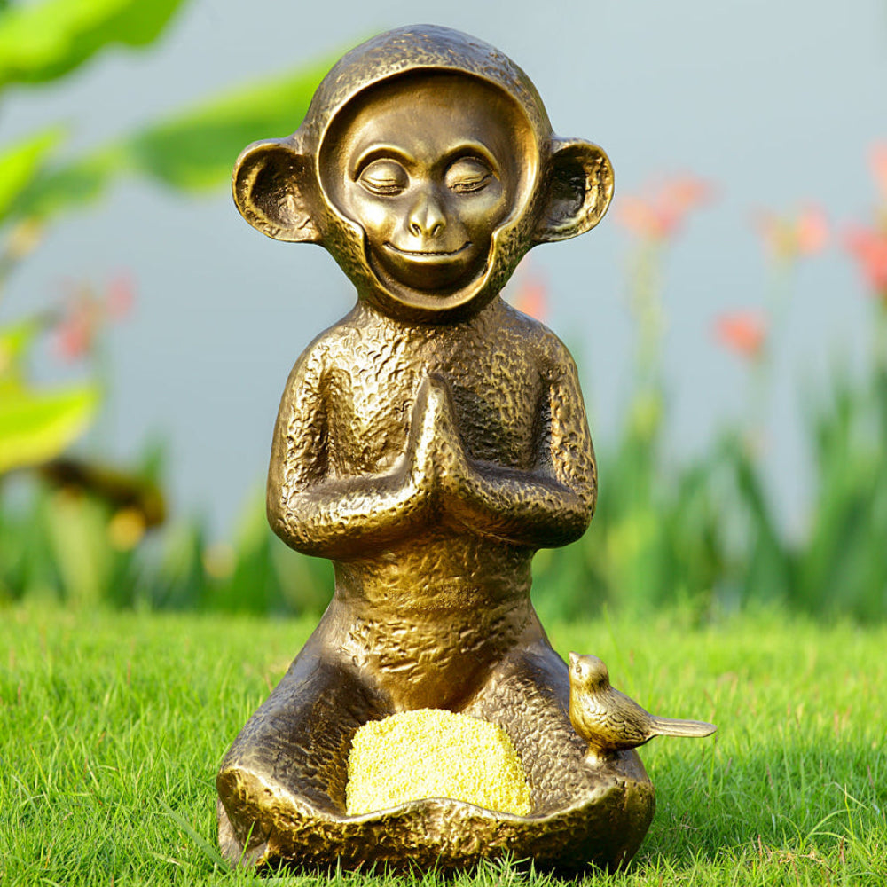 • Decorative birdfeeder featuring a meditating monkey design