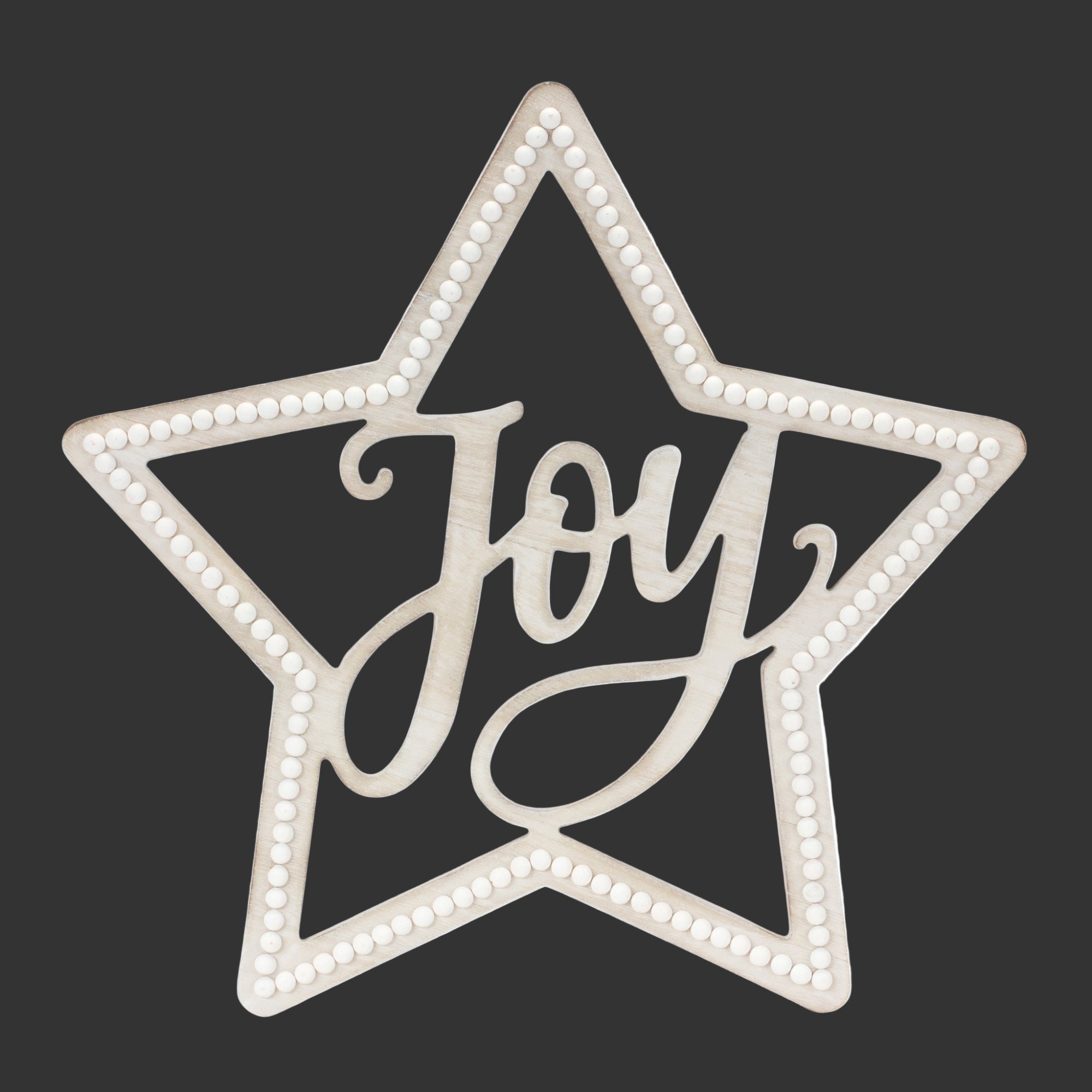 Bring a warm and welcoming holiday feel to your space with this beautiful Joy Star Decor Set of 2, crafted from durable MDF wood and measuring 15.75 inches in height, 15.75 inches in length, and 0.5 inches in width. Designed with a delicate beaded border and a soft brown and white neutral color palette, each star features a heartfelt “Joy” sentiment that adds meaning and charm to your seasonal décor. The smooth wood finish and modern design make these stars perfect for mantels, shelves, tabletops, or holiday centerpieces. Lightweight yet sturdy, they create a clean, balanced decorative look in contemporary or minimalist holiday homes.