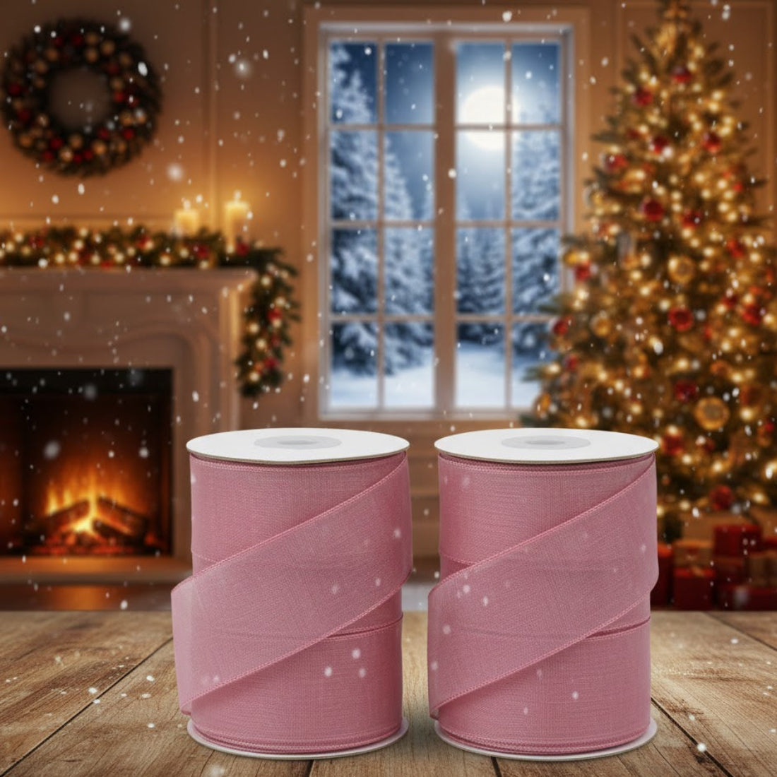 Blush pink Christmas ribbon,Christmas Décor,Christmas gift wrap ribbon,Christmas Ribbon,Decorative Accents,DIY Christmas decor ribbon,Festive ribbon for crafts,Holiday crafting ribbon,Holiday ribbon set of 2,Home Décor,Indoor Décor,Luxe Decor,Outdoor Décor,Pink wired ribbon for wreaths,Xmas tree garland ribbon