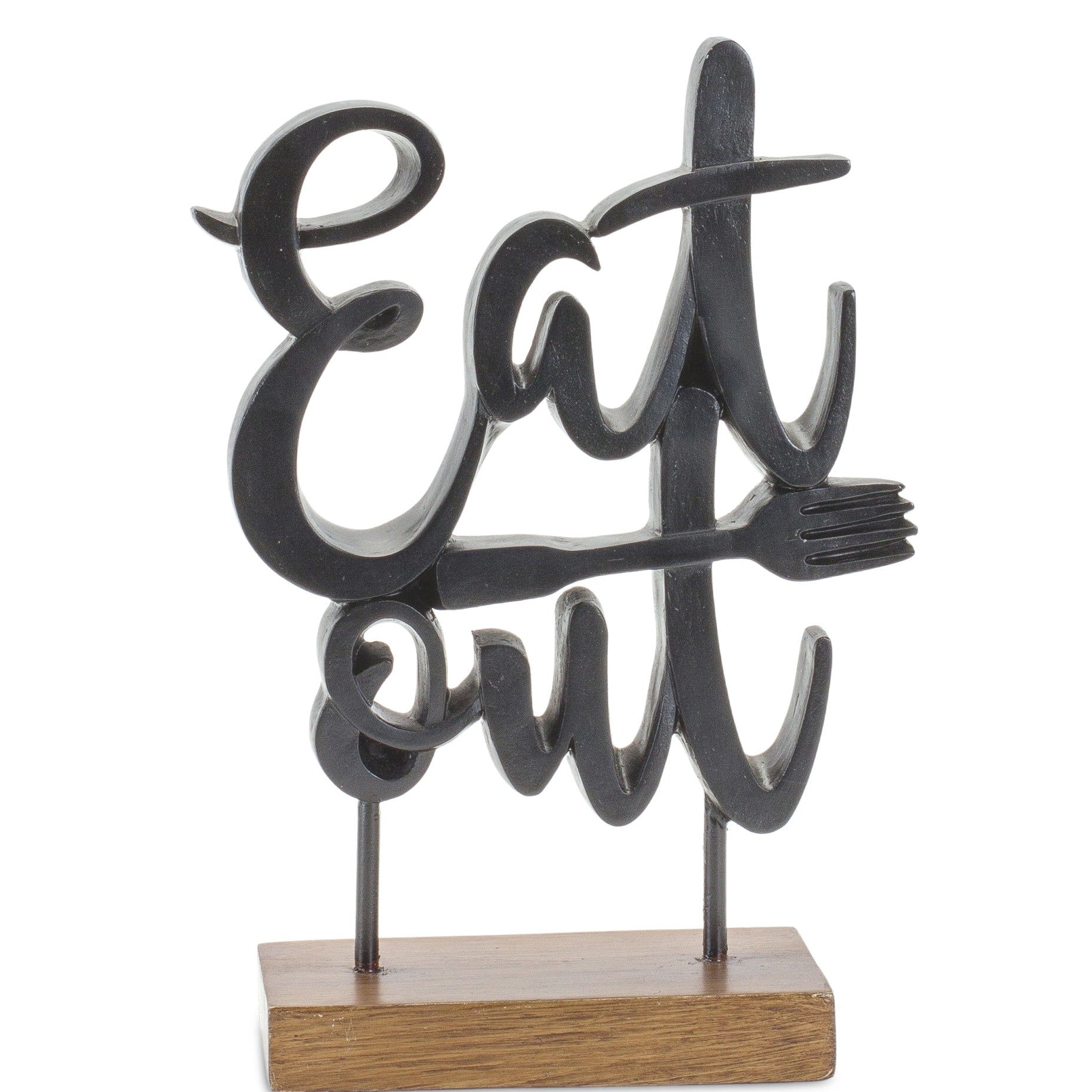 Eat Out Kitchen Sentiment Sign – 8.75"H Black Polyresin Cut-Out Decor with Wood Base by Melrose
