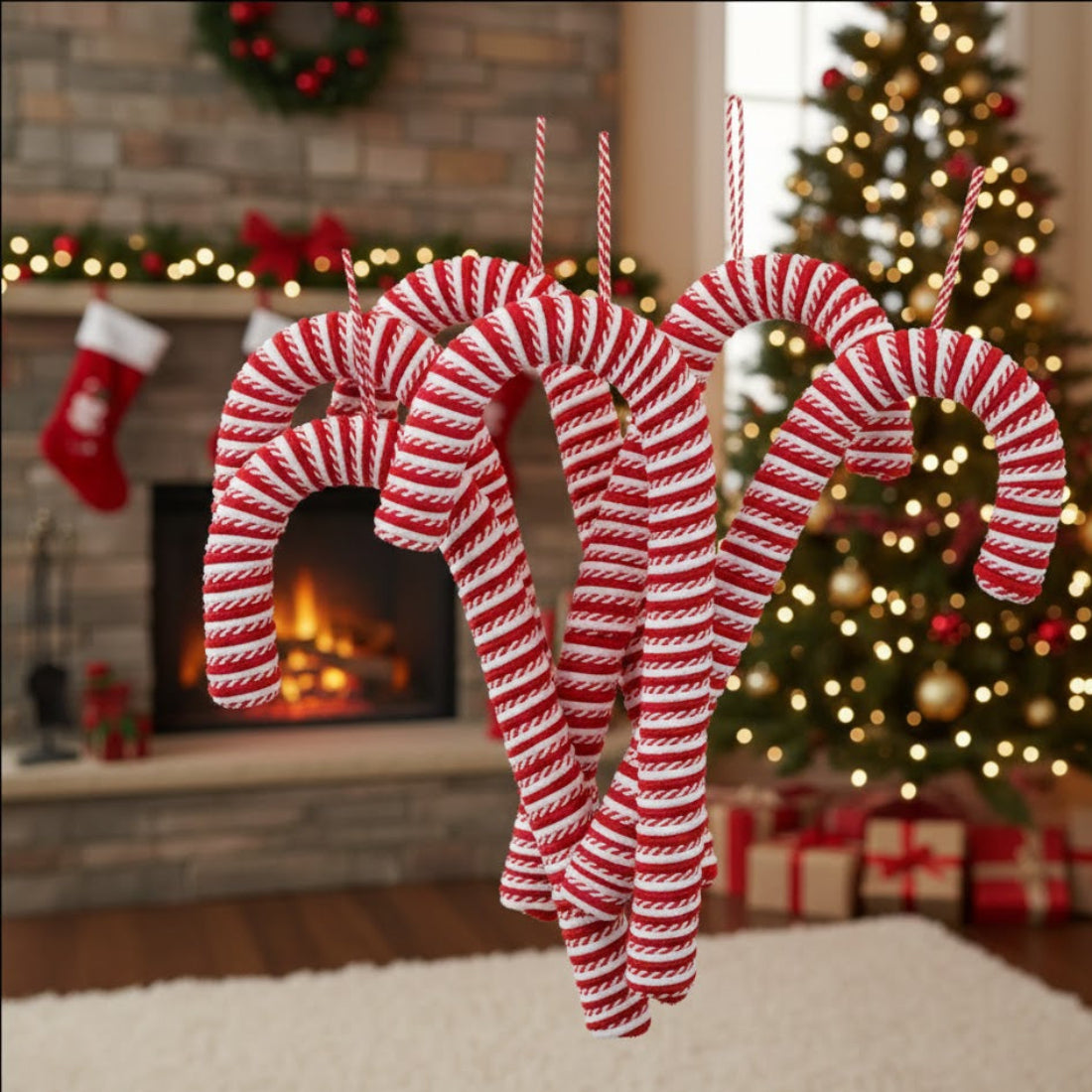 - Set of 6 oversized candy cane ornaments for holiday decorating