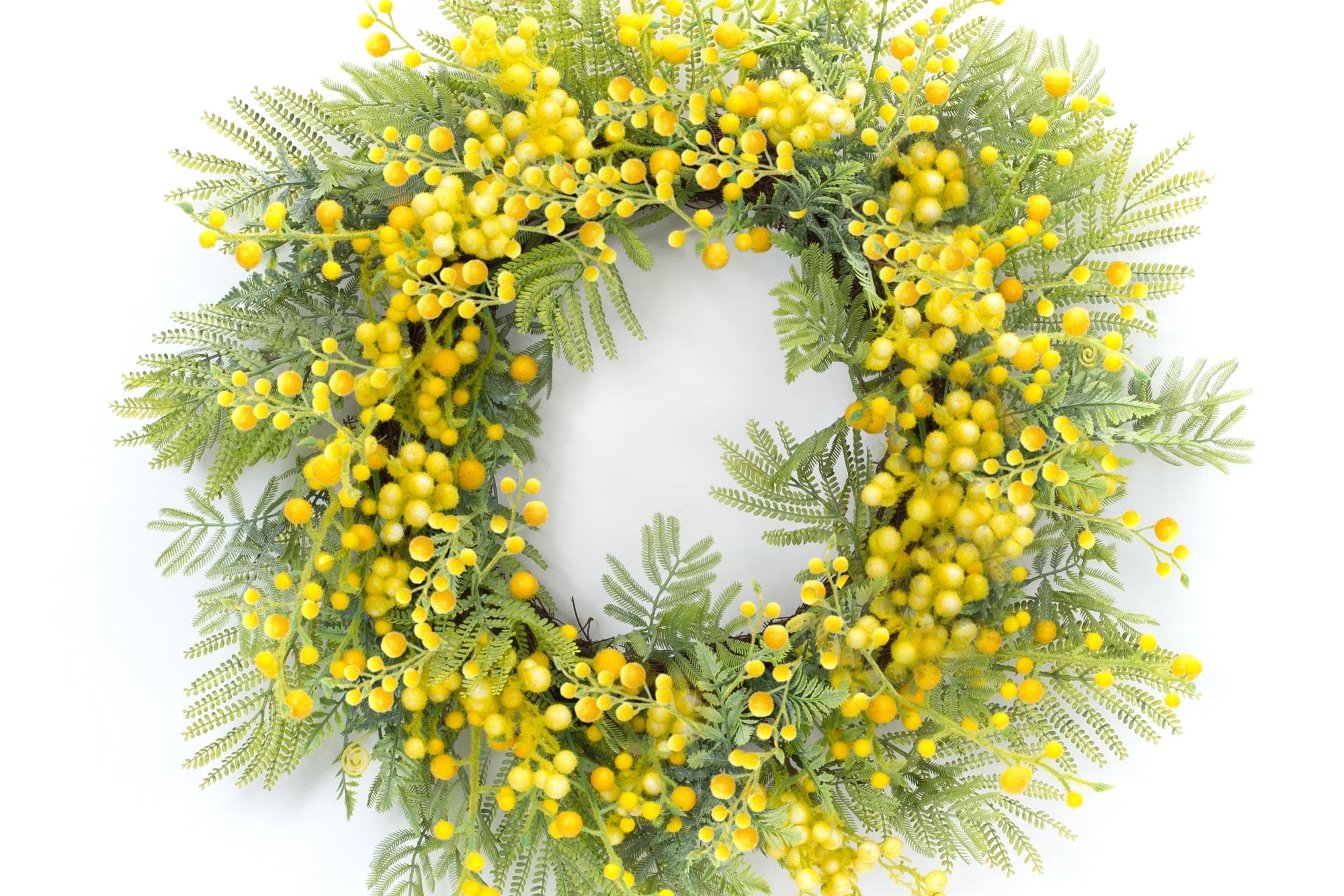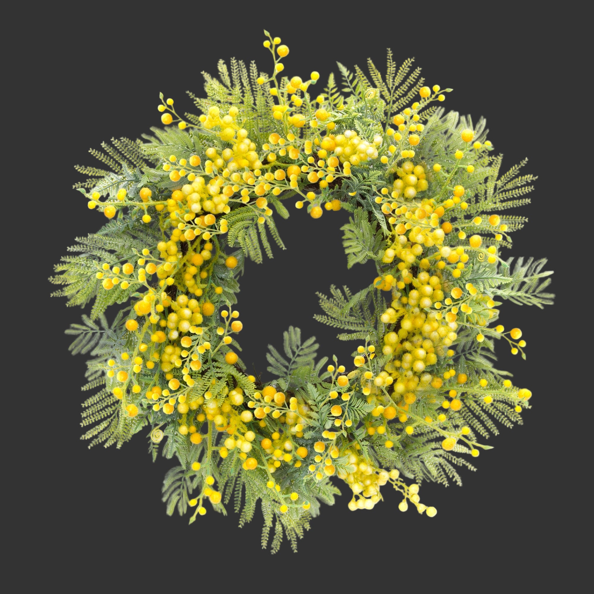 SKU - MEL-85458DSFern & Mimosa Wreath – 27"D Lifelike Green Foliage & Yellow Berry Accent Door Wreath