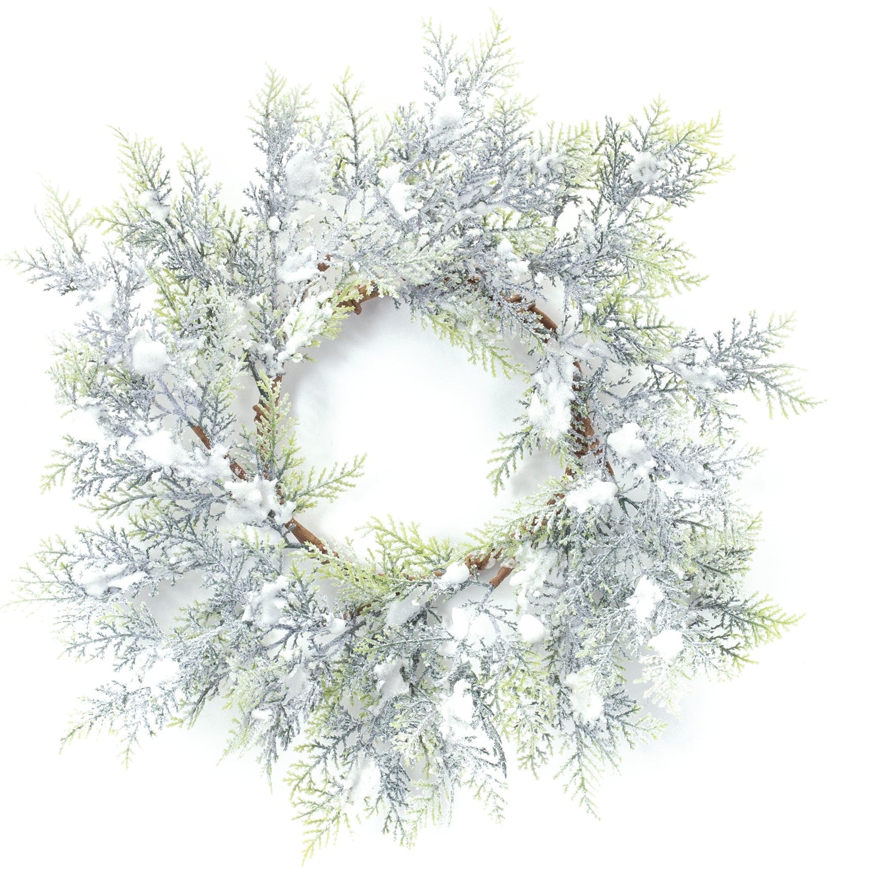 Snowy Cedar Wreath – 15"D Christmas Door Wreath Plastic Holiday Accent by Melrose