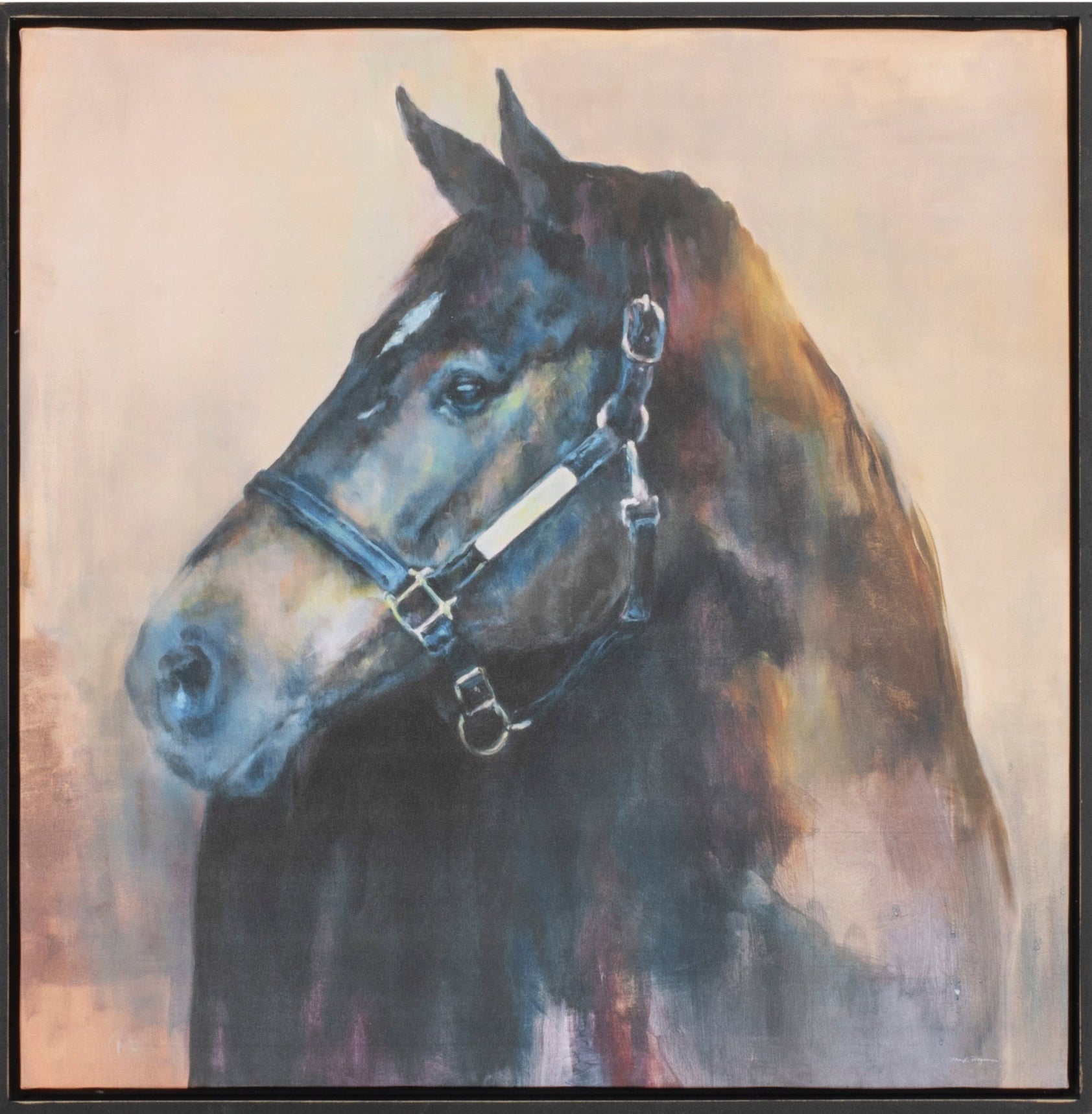 - Majestic horse artwork in warm black and beige tones