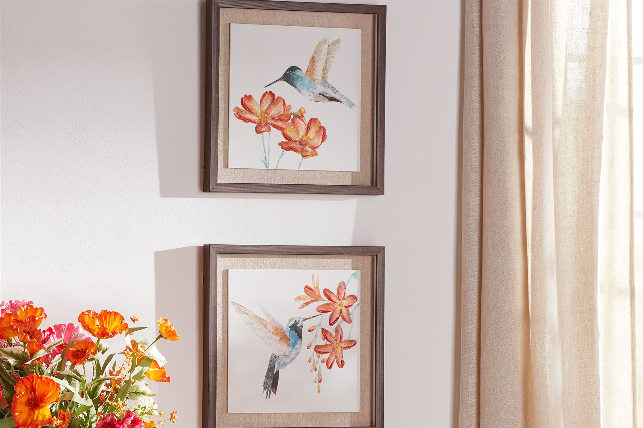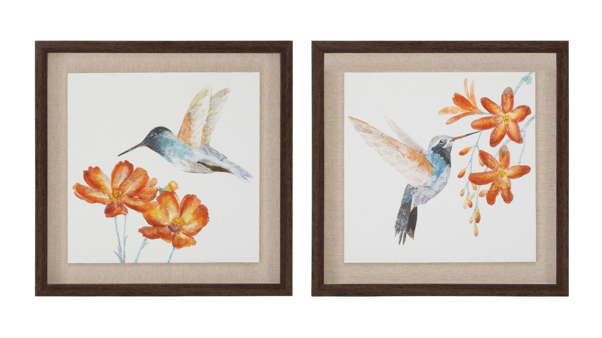 Decorative Hummingbird Floral Wall Print Set of 2 by Melrose