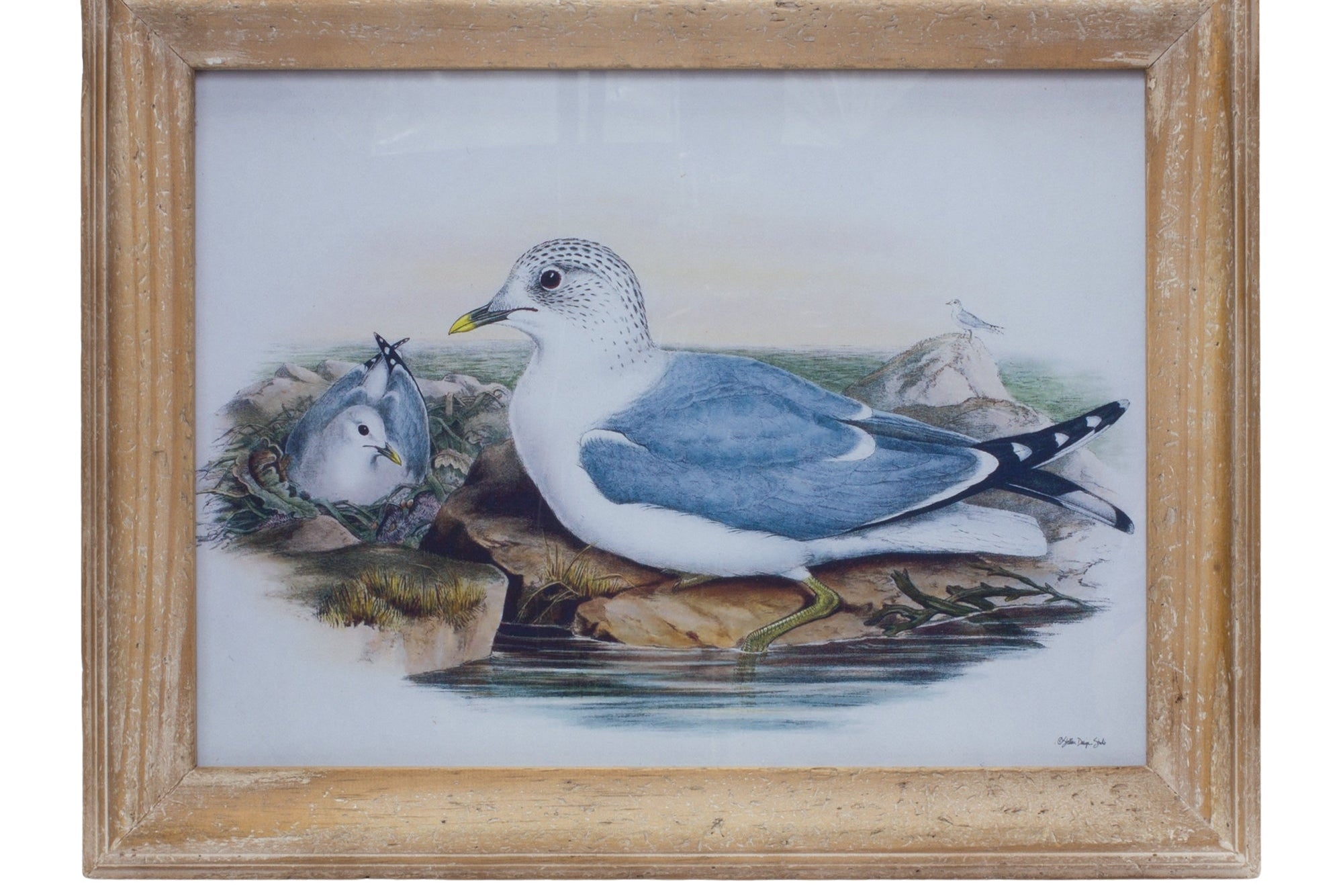 Framed Bird Print 13"H, Fir Wood Frame Under Glass Coastal Wall Decor by Melrose