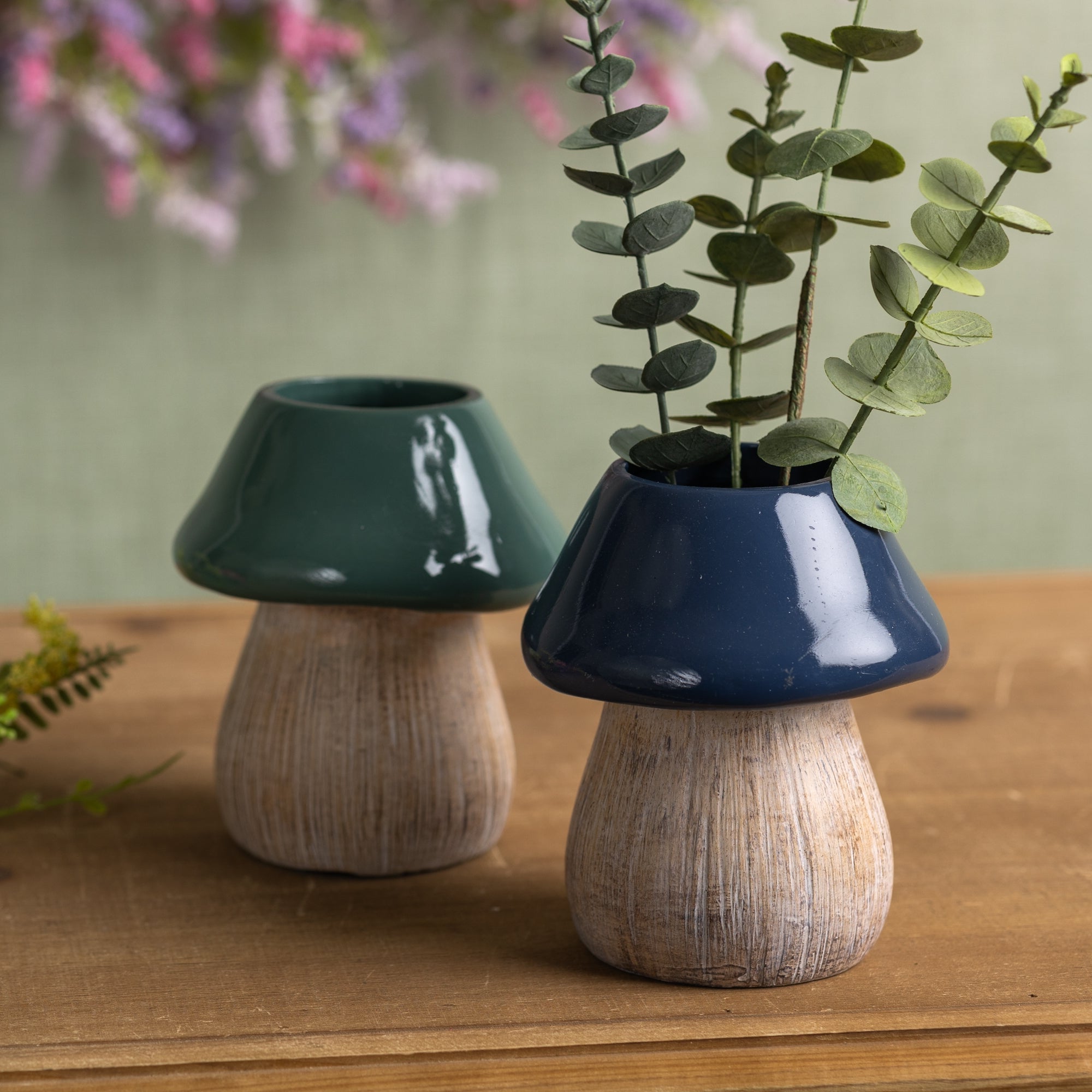 Mushroom Planter Set of 2 – Resin Garden Decor – 5.5 Inch Height – Green Blue Modern Style – By Melrose