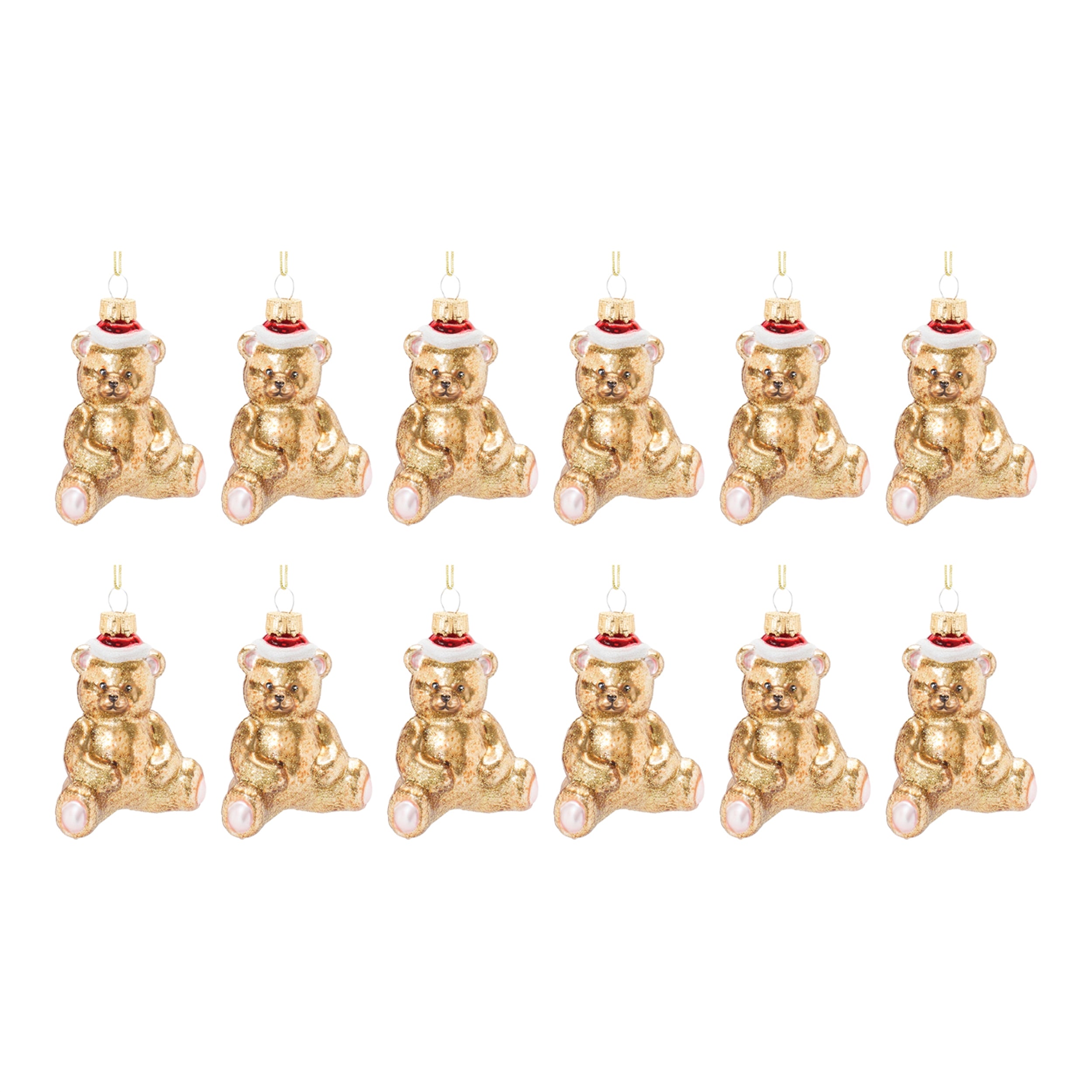 - Set of 12 glass teddy bear ornaments for Christmas decor