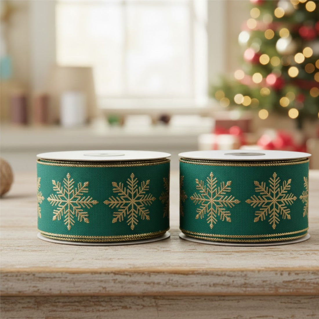 Christmas Snowflake Craft Ribbon 2.5" – Wired Holiday Ribbon Set of 2 by Melrose