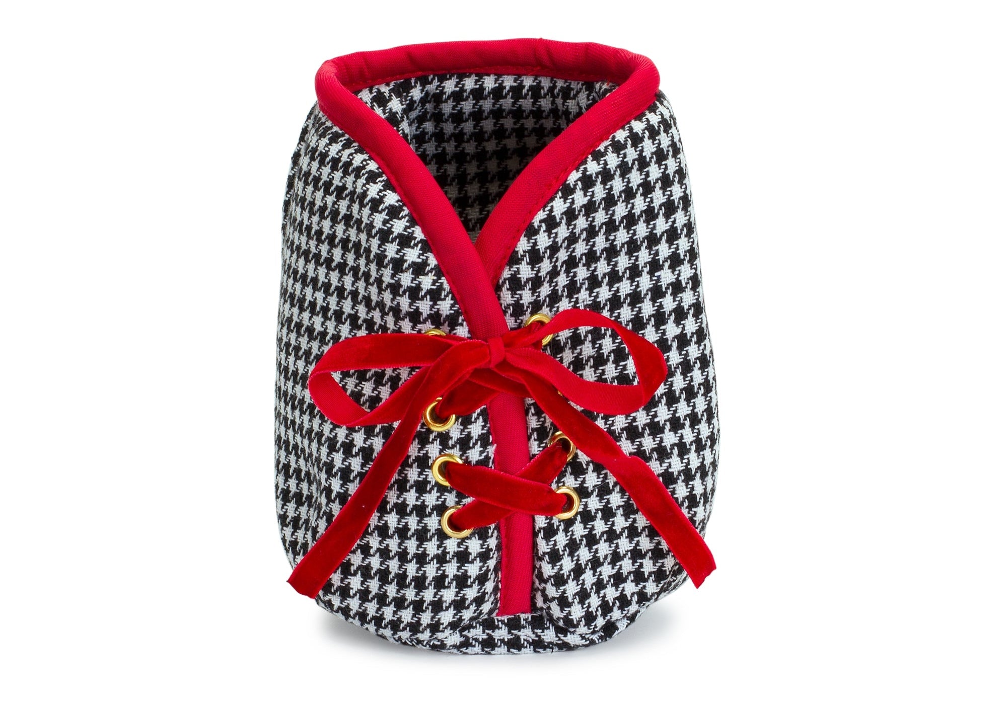 Polyester Tree Pot Cover 4" x 5" in Black & White Houndstooth Plaid with Red Trim by Melrose