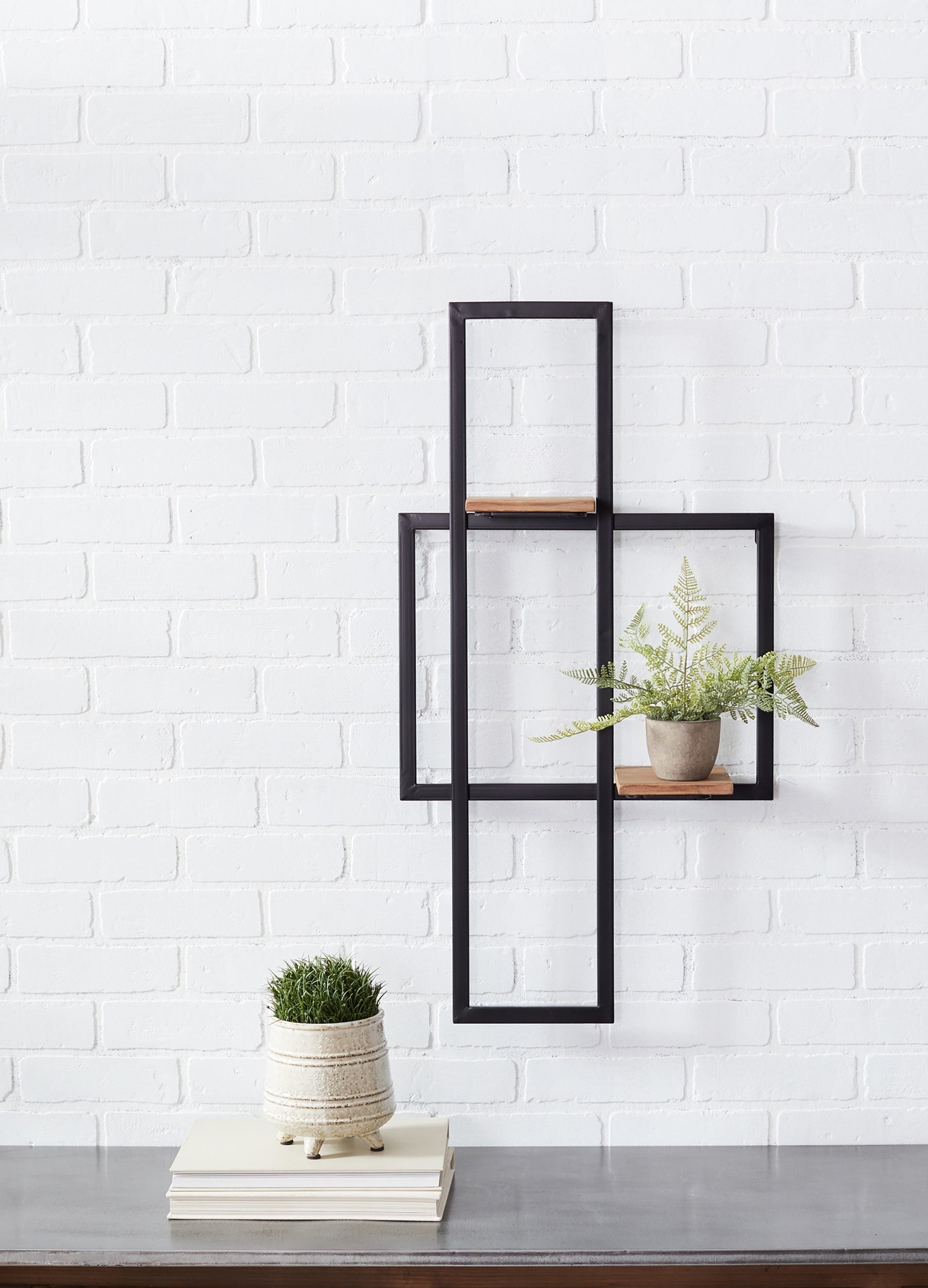 Iron Metal Wall Shelf with Wood Shelves – 33.5"H – Black and Brown Modern Industrial Wall Decor – By Melrose