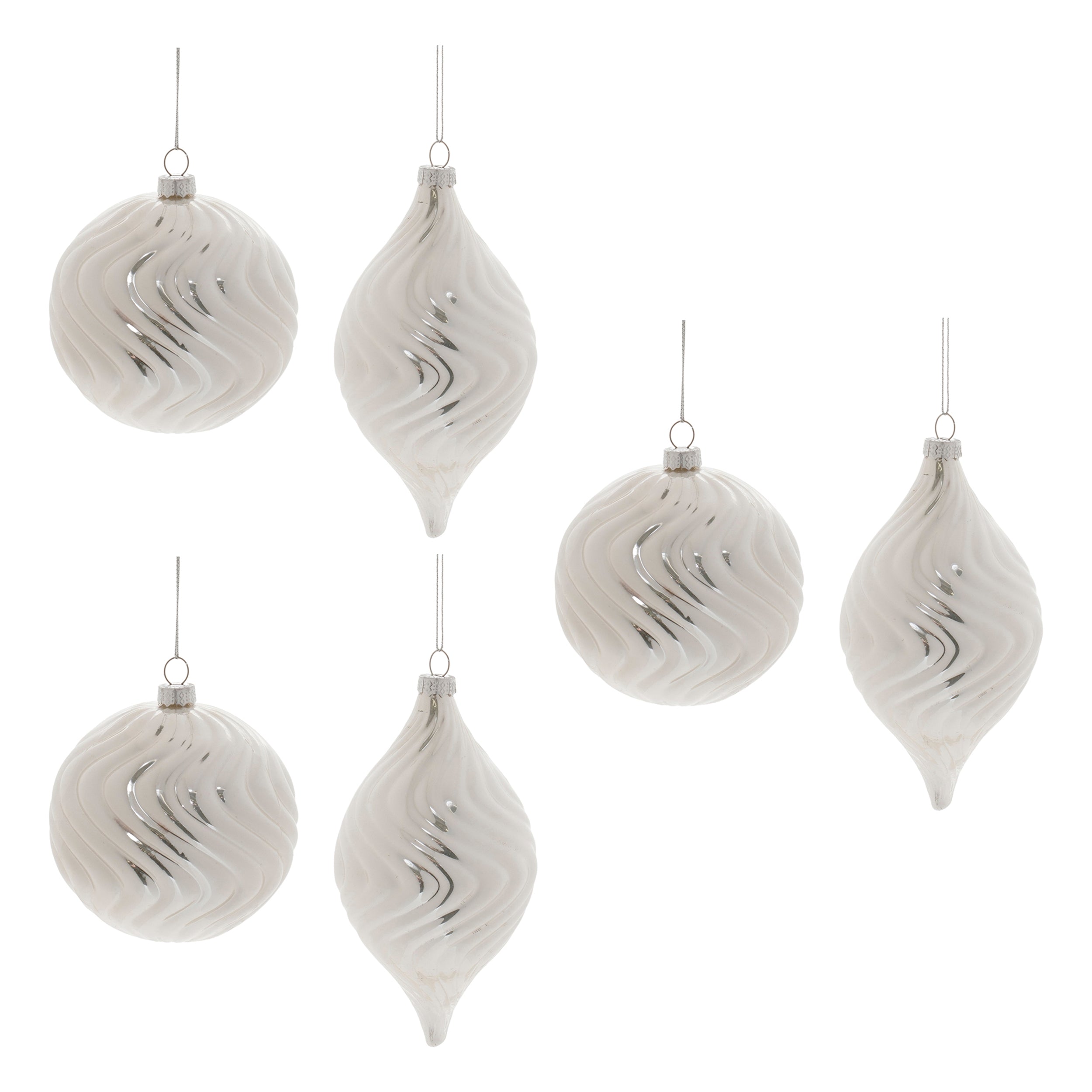 Wavy Glass Christmas Ornament 6.75"H Ivory Ribbed Glass Hanging Holiday Decor (Set of 6) by Melrose