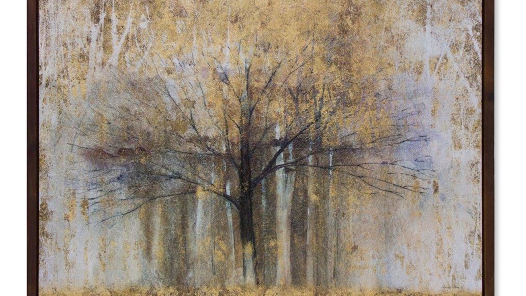 This framed landscape canvas adds a warm natural element to a variety of indoor spaces. The artwork features soft black, yellow, and brown tones that create a calm and inviting composition. Printed on canvas and set within a wood frame with a gold toned finish, the piece offers a balanced mix of texture and simple detail. Measuring 31.5 inches long, 1 inch wide, and 23.75 inches high, it is sized for living rooms, bedrooms, hallways, or entry spaces. Its neutral palette allows it to coordinate easily with contemporary or transitional decor while providing an understated focal point for blank walls.