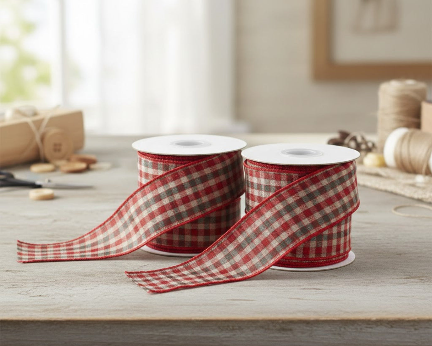 Cotton Wired Plaid Ribbon 180" – Holiday Decorating Essential Set of 2 by Melrose