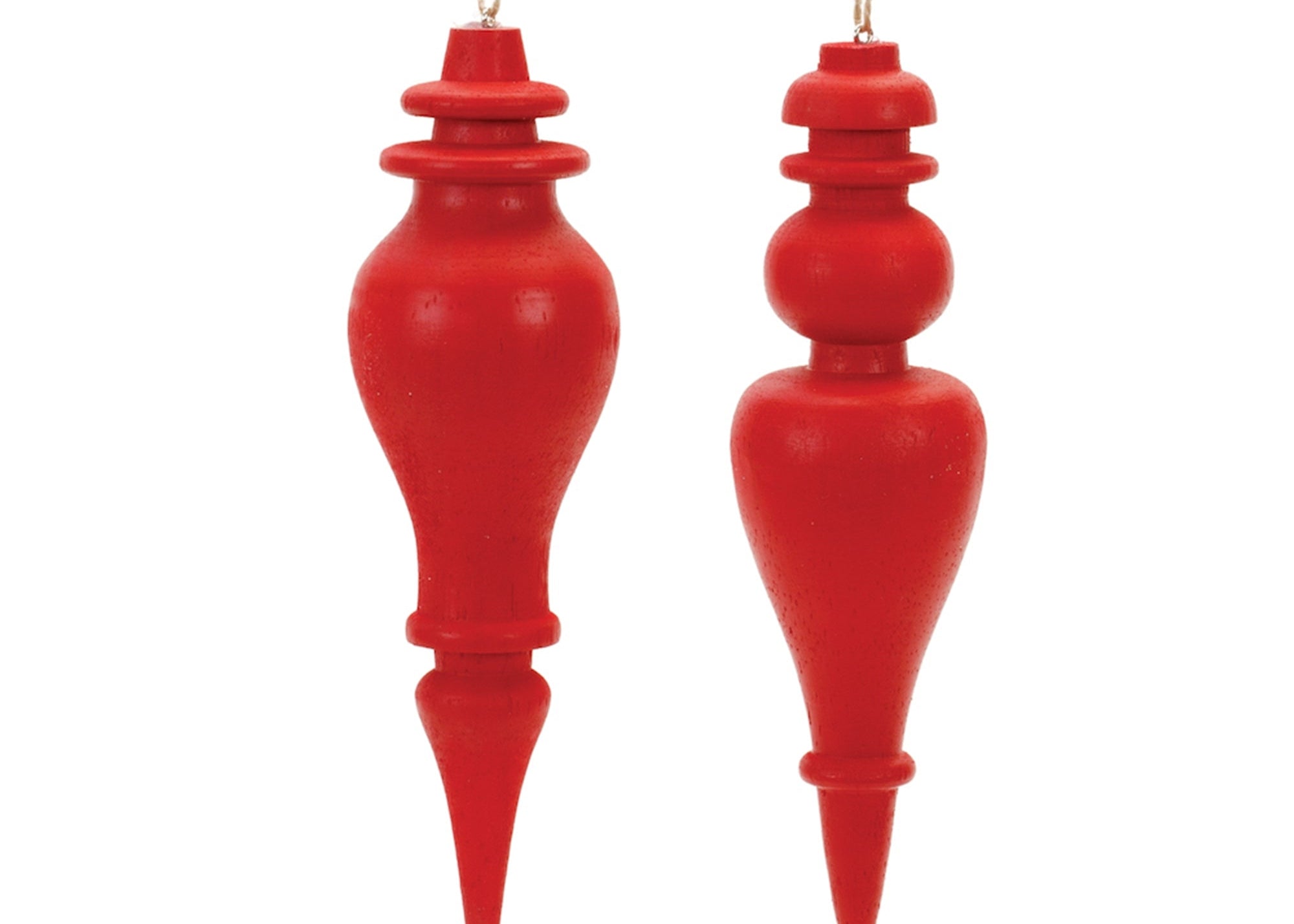 SKU - MEL-91808DSRed Wood Finial Christmas Tree Ornament Set of 6 6 Inch Oak Wood