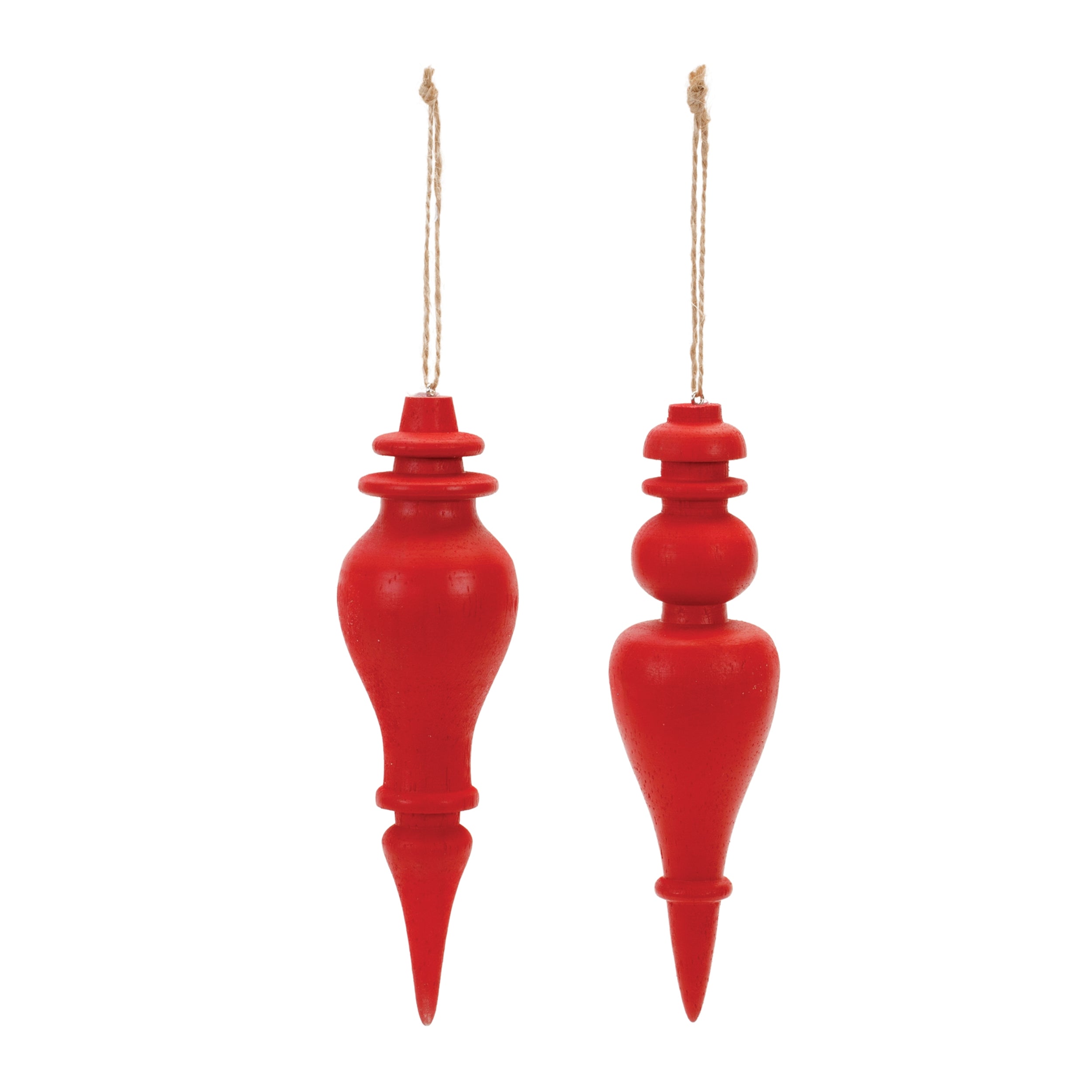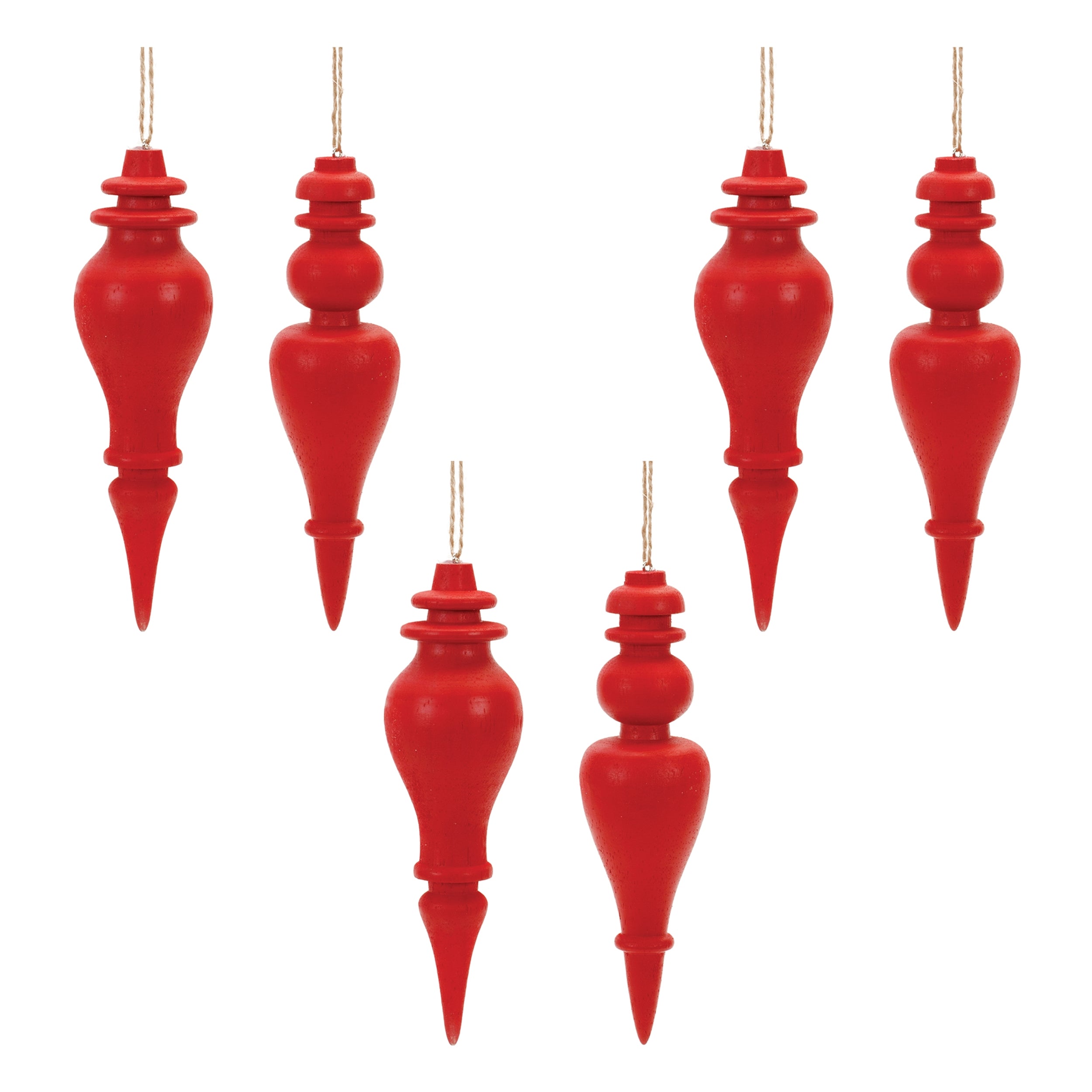 Red Wood Finial Christmas Tree Ornament Set of 6 6 Inch Oak Wood by Melrose