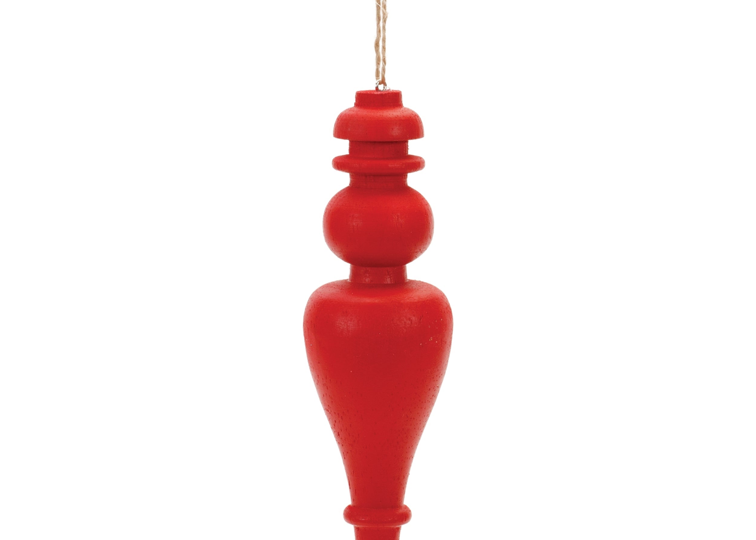 Bring classic holiday elegance to your decor with this Red Wood Finial Drop Ornament Set. Crafted from solid oak wood and finished in a rich festive red, each ornament stands 6 inches tall and showcases a timeless finial silhouette. Complete with natural jute string hangers, these ornaments are easy to display and perfect for adding traditional charm to Christmas trees, wreaths, or garlands. Durable, stylish, and reusable year after year, this set of six is ideal for creating a warm and festive indoor holiday atmosphere.
