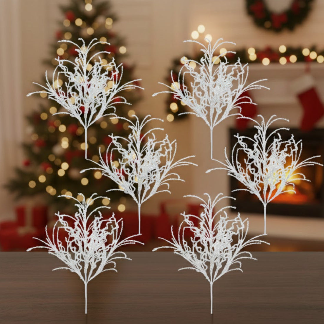 Holiday Glitter Twig Stems 24"H – White, Set of 6 by Melrose