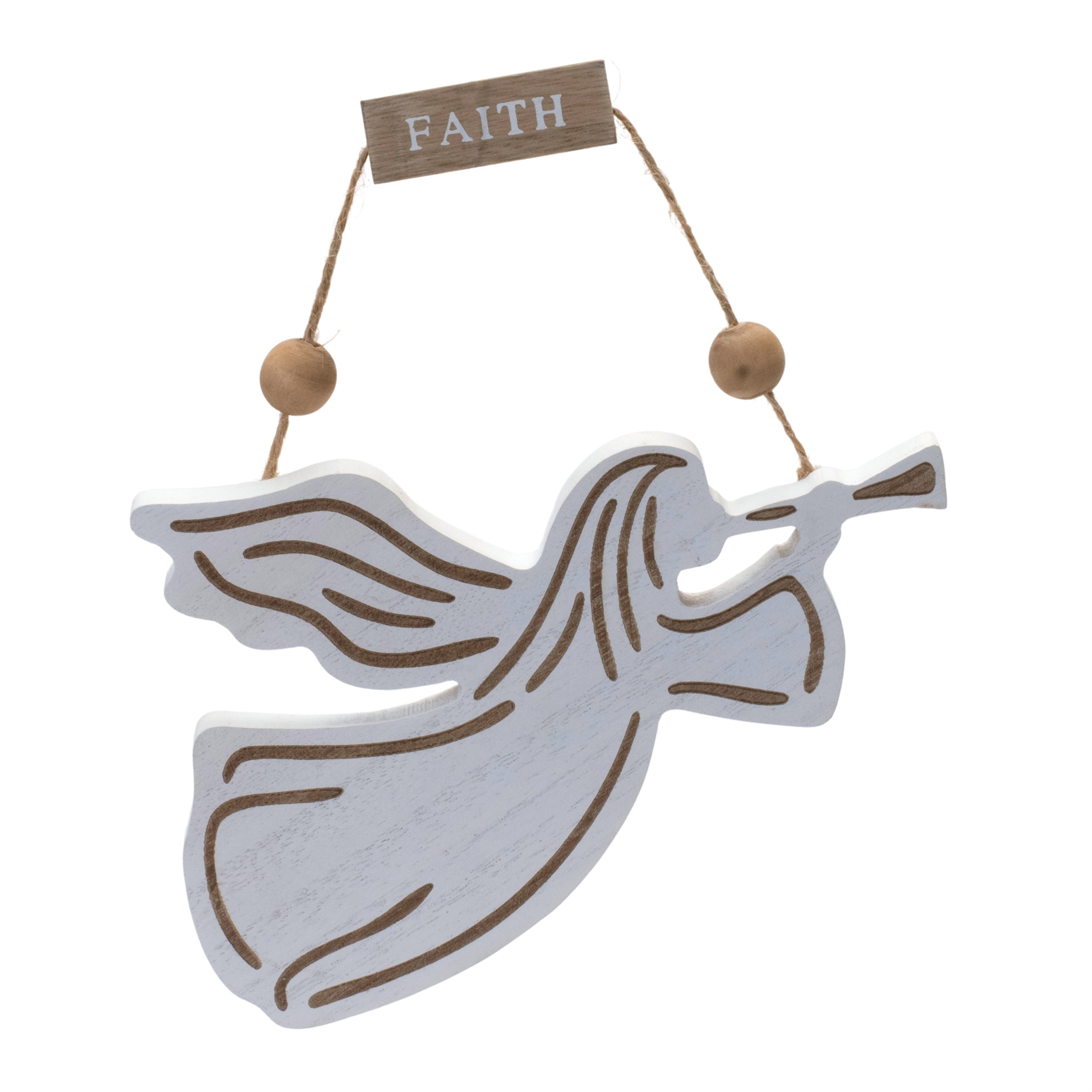Bring a sense of faith and serenity to your holiday décor with the Wood Dove and Angel Sentiment Ornaments by Melrose. This meaningful set of six ornaments features softly sculpted dove and angel designs adorned with heartfelt “Peace” and “Faith” sentiments. Crafted from MDF wood and finished with natural jute hanging strings and delicate wood bead accents, these ornaments offer a warm, handcrafted look. The neutral white and beige tones blend effortlessly with traditional, farmhouse, or rustic Christmas décor, making them a timeless addition to your tree or a thoughtful seasonal gift.