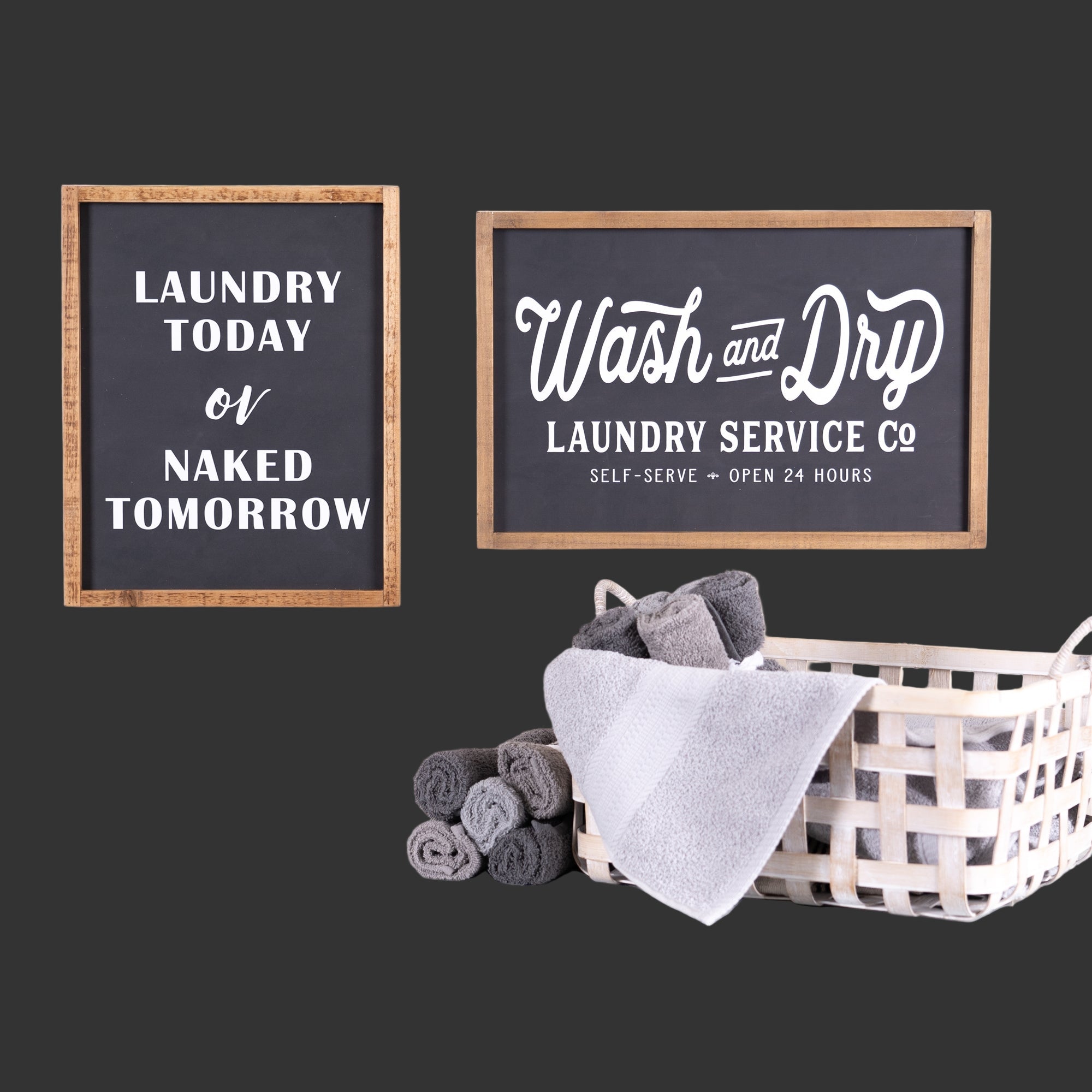 Features cheeky phrase “Laundry Today or Naked Tomorrow” for a humorous touch