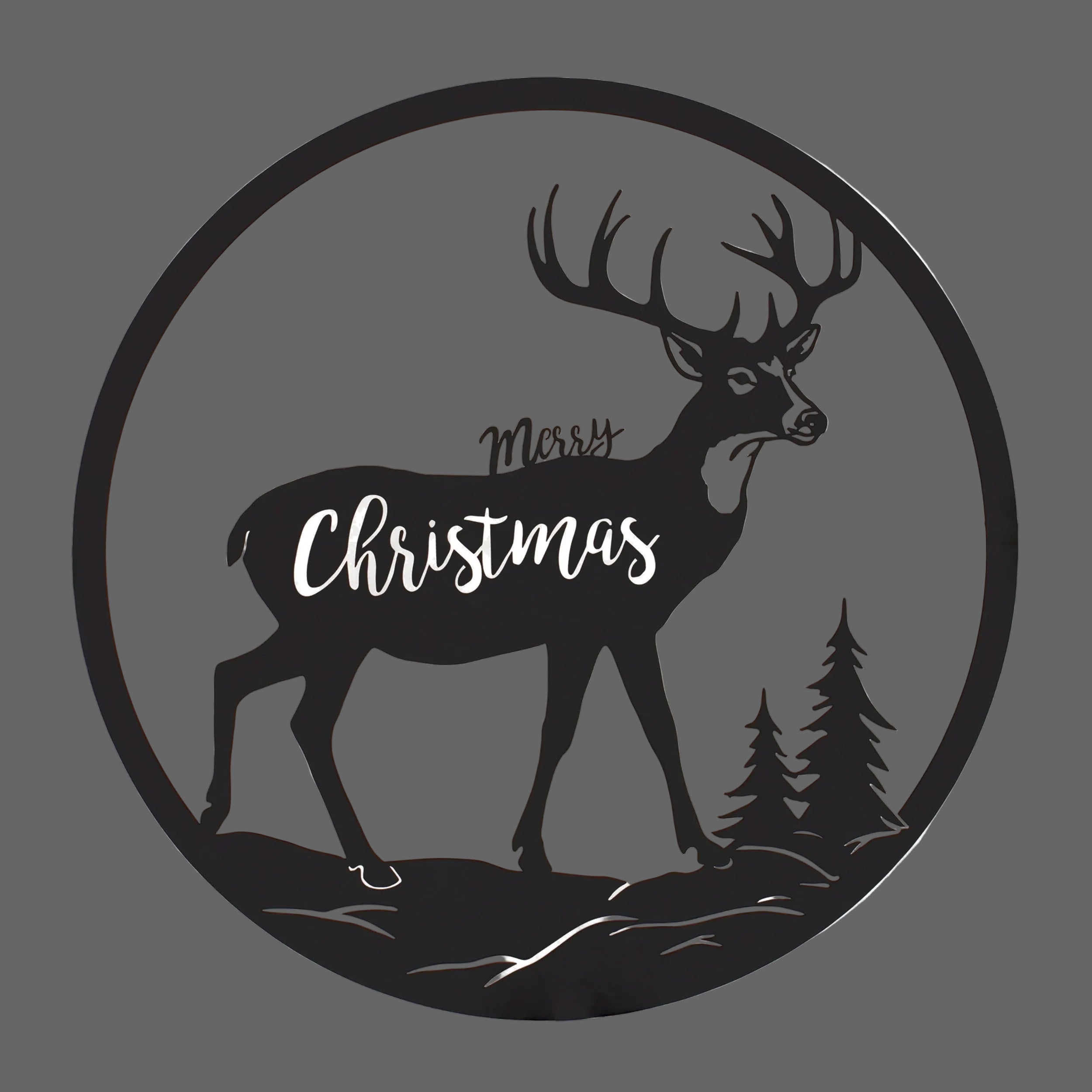 Add rustic holiday charm to your home with this Merry Christmas Deer Plaque, beautifully crafted from durable sheet iron for a bold and timeless look. Measuring 16" diameter x 0.5" depth, this round wall piece features a beautifully cut deer silhouette paired with the classic "Merry Christmas" sentiment. Its sleek black finish blends perfectly with farmhouse, rustic, and traditional Christmas decor styles.