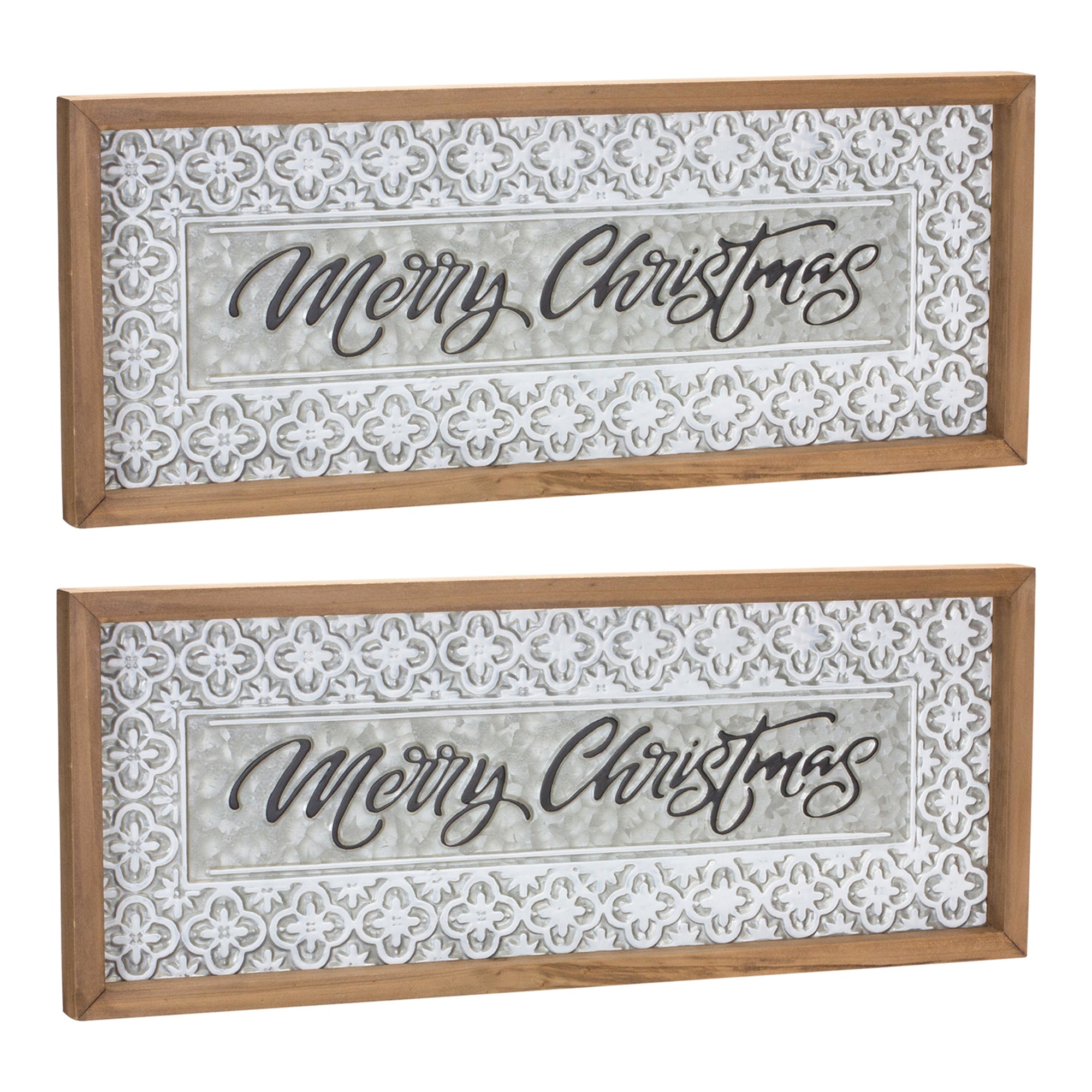 Merry Christmas Sign Wall Decor – Metal & Wood – 8"H – Set of 2 – Holiday Decoration – By Melrose
